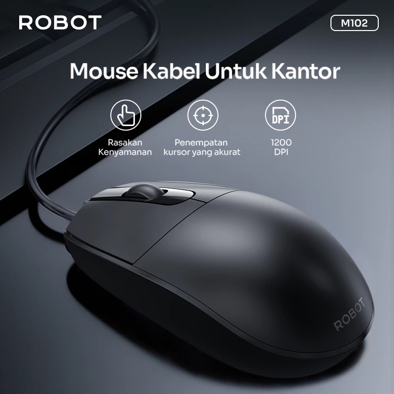 [Mall] ROBOT M102 MOUSE WIRED LAPTOP KOMPUTER OFFICE MOUSE USB KABEL 1200 DPI TERMURAH GARANSI ORIGINAL
