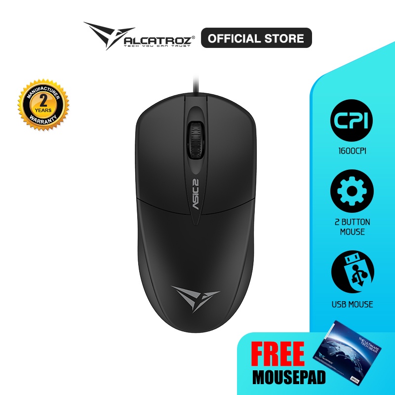 [Mall] MOUSE KABEL ALCATROZ ASIC 2 WIRED USB MOUSE 1600 CPI | ERGONOMIC DESIGN WITH HIGH RESOLUTION OPTICAL MOUSE