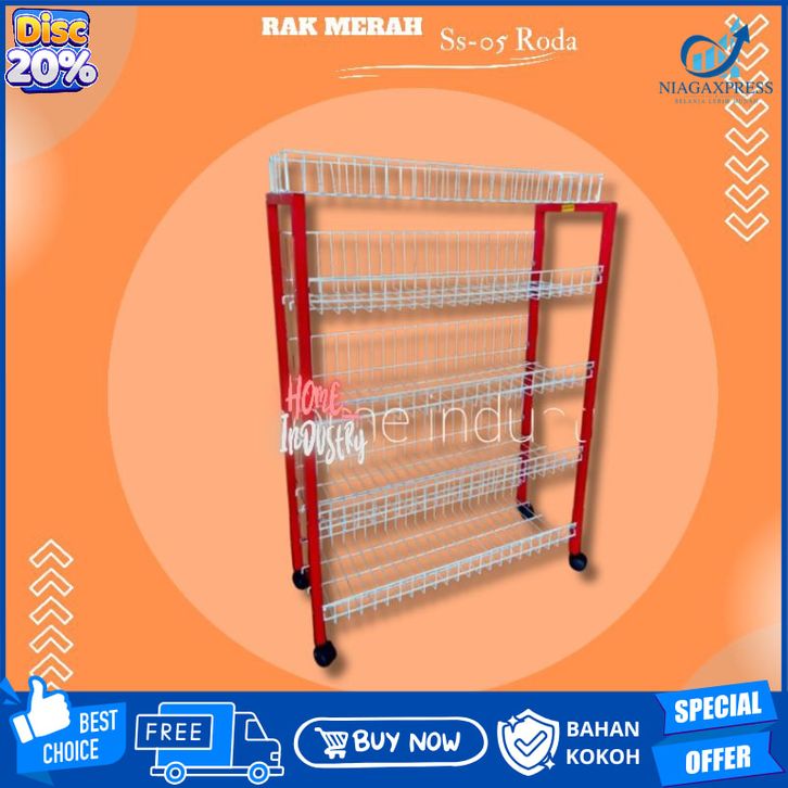 Rak Ciki Besi Ss 5 roda/ Rak Serbaguna Mini Market / Rak Display Roda Susun 5 Tebal / Rak Besi / Rak Susun 5 Besi