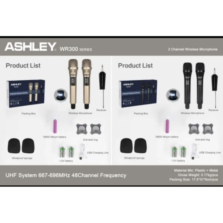 Mic Wireless Ashley WR 300 WR300 WR-300 Dual Mic Handle UHF Original