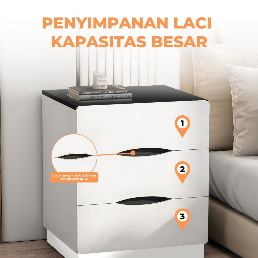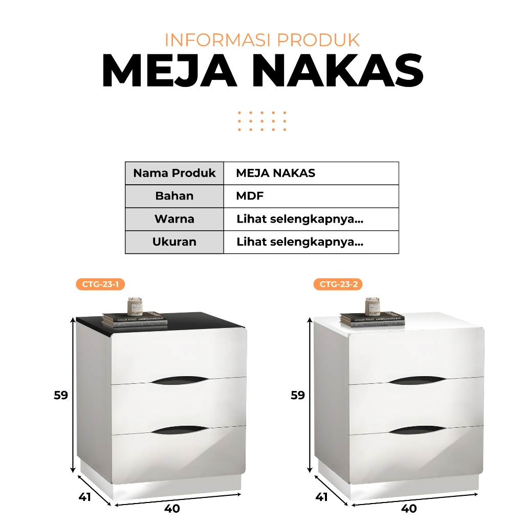 Meja Nakas Minimalis Jumbo 3 Laci Serat Putih / Meja Nakas Kamar / Meja Nakas Terlaris