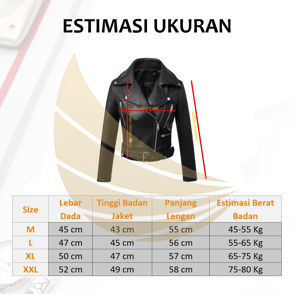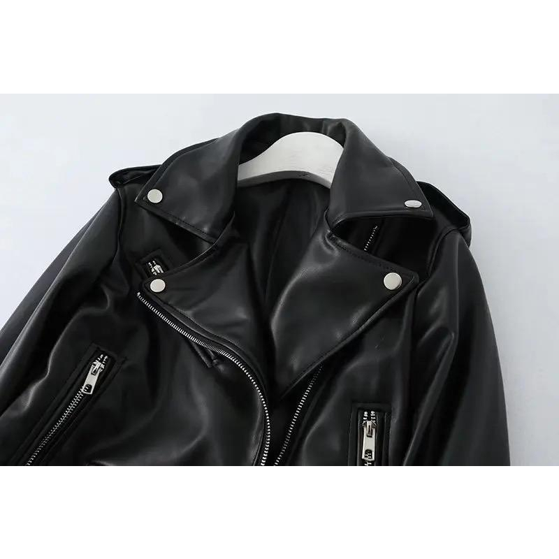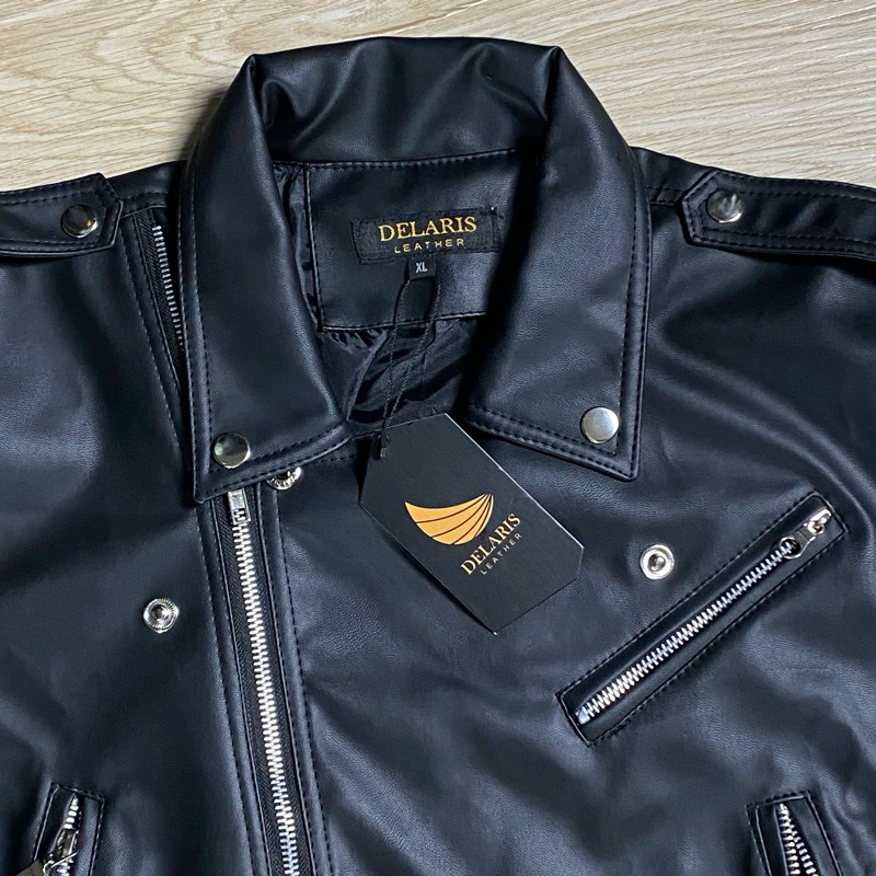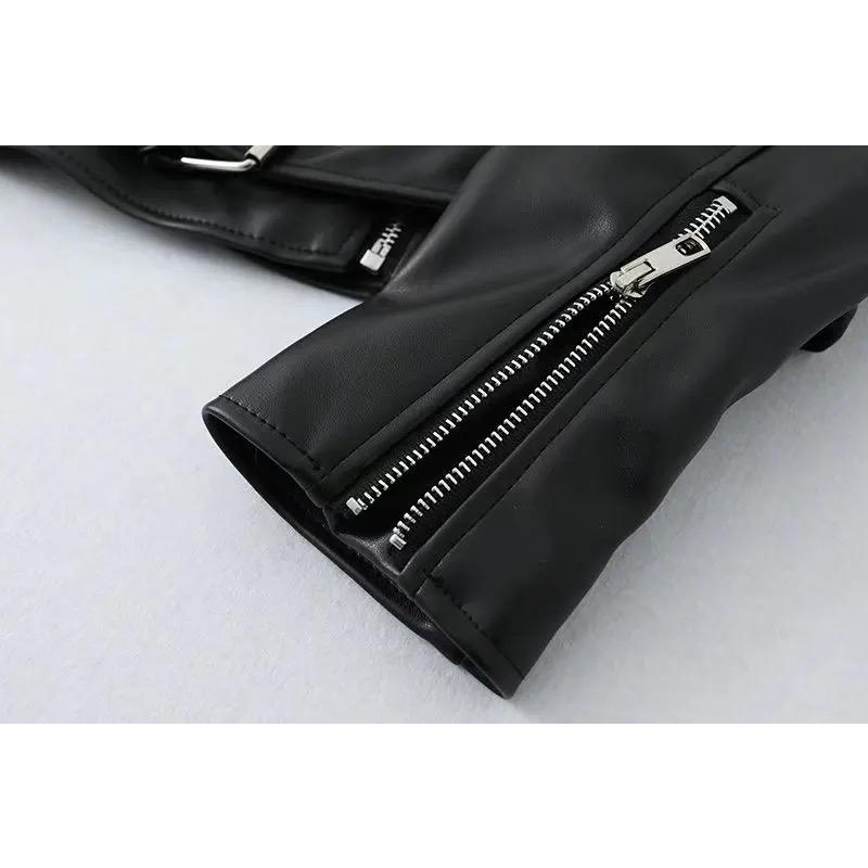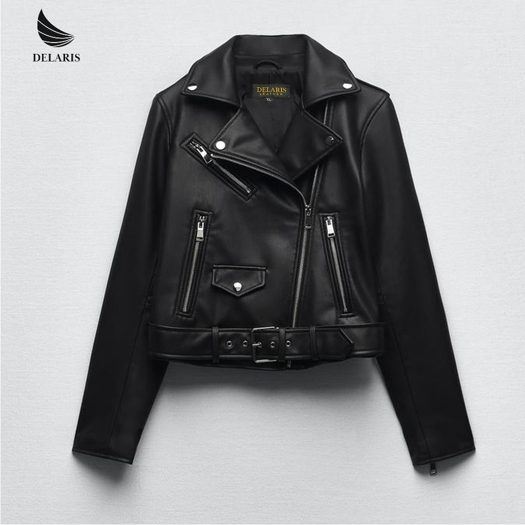 Delaris Jaket Crop Wanita Bikers Kulit Sintetis Vienna Hitam