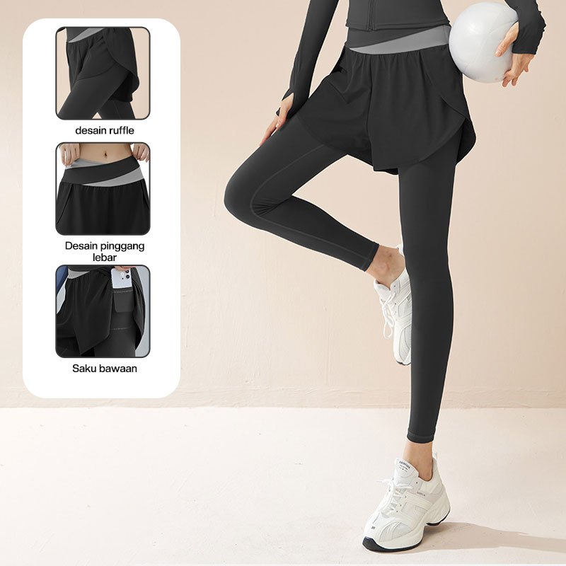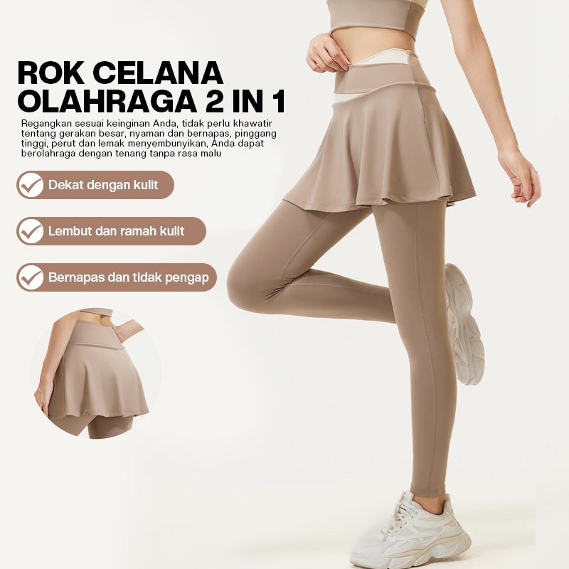 RAGA Legging Celana Rok High Waist Sport Yoga Olahraga Wanita Skirt Dwi Lapisan 2 in 1