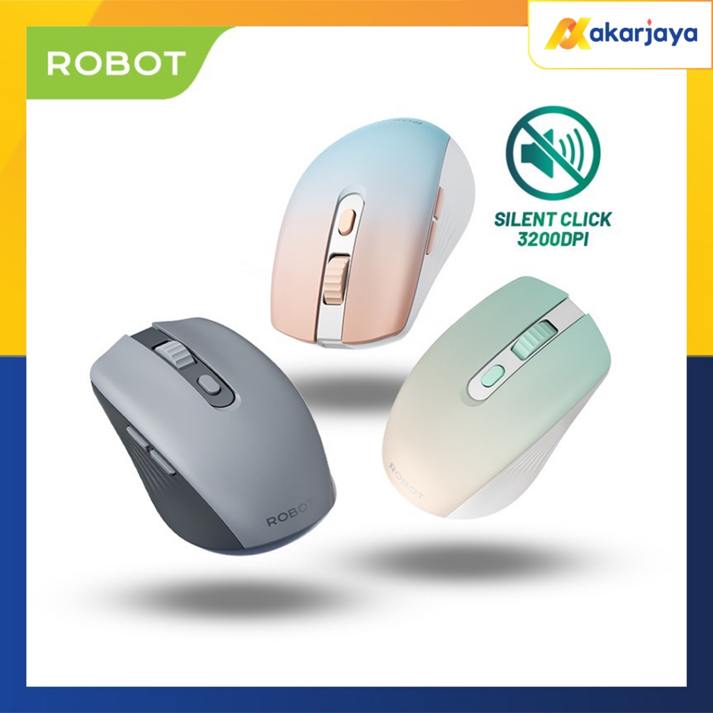[Mall] ROBOT M370 MOUSE WIRELESS 2.4GHZ SILENT KLIK OPTICAL 3200DPI INCLUDE BATTERY ORIGINAL
