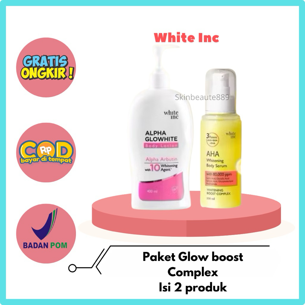 BUNDLING Paket glow Boost Complex White inc Aha Body Serum + Alpha Glow White Body Lotion|Paket Pencerah tubuh