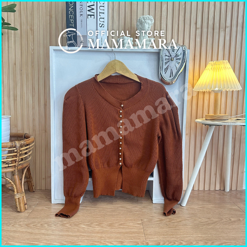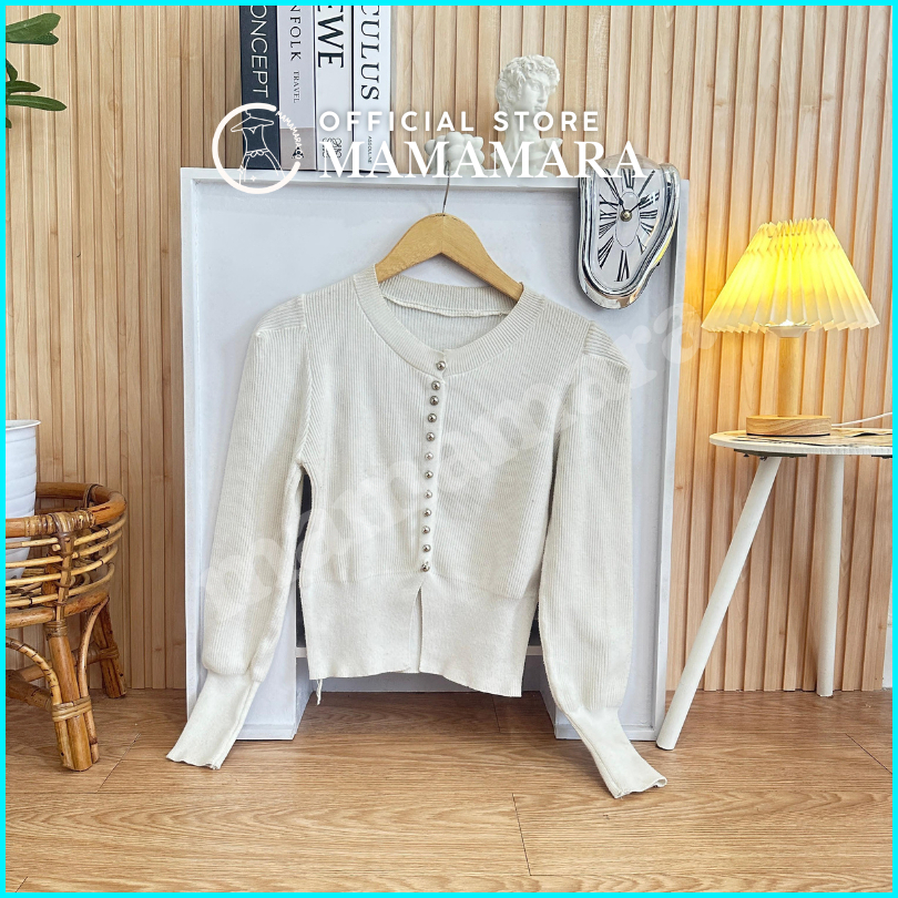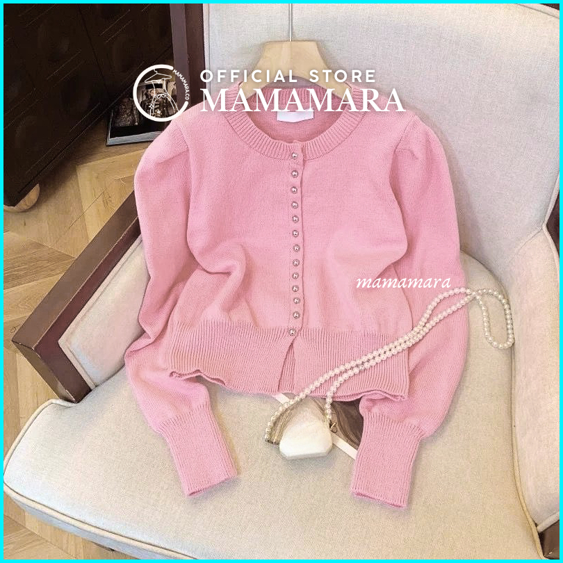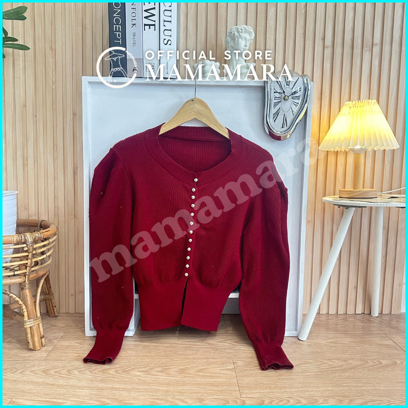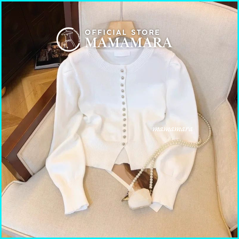 Mamamara - Atasan Rajut Blouse Wanita Knitwear Kancing Pearl Round Neck Simple