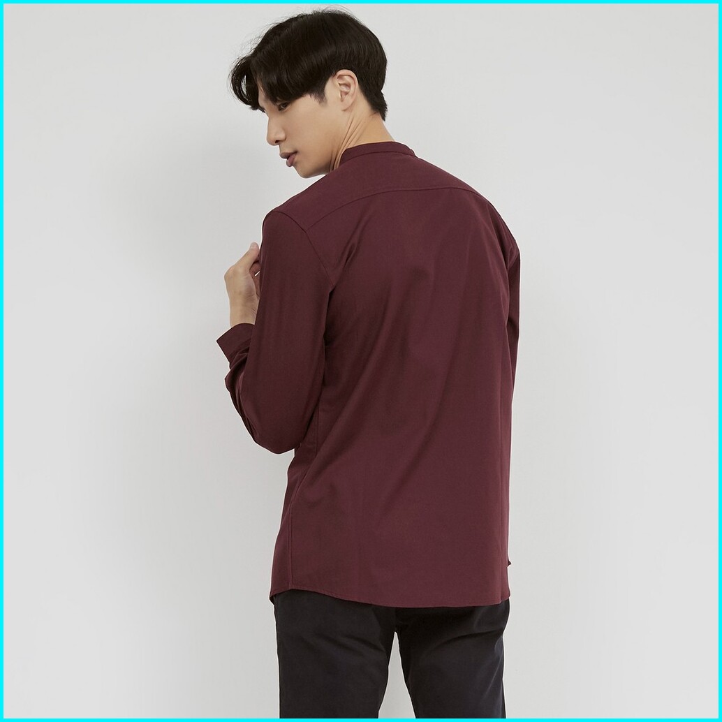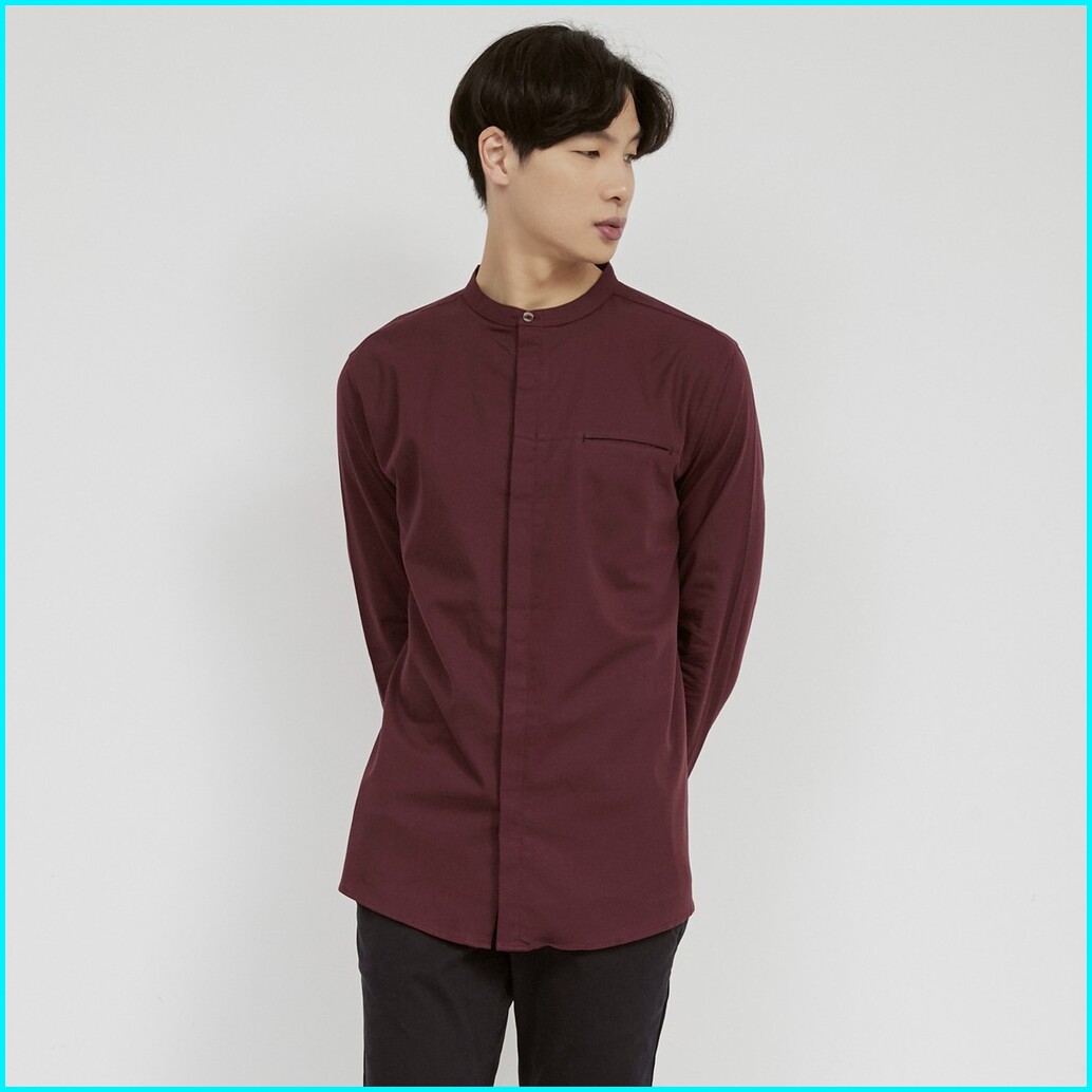 M231 Kemeja Pria Koko Shanghai Polos Soft Twill Panjang Maroon 1971c