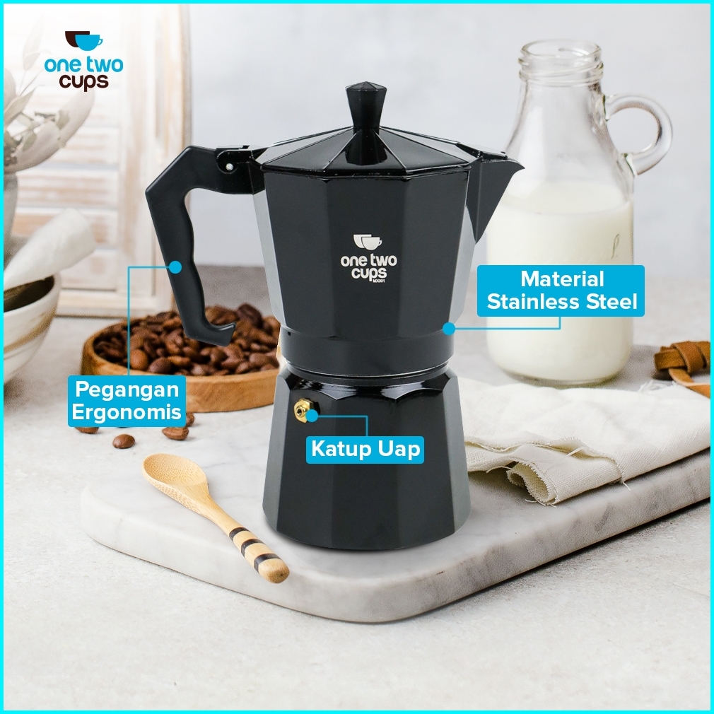 One Two Cups Moka Pot Coffee Maker Teko 300ml 6 Cups - Mx001