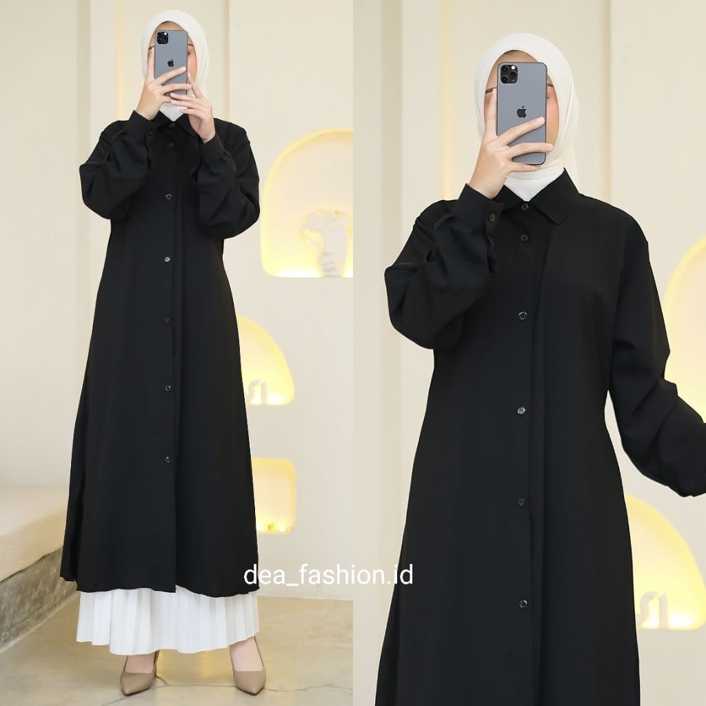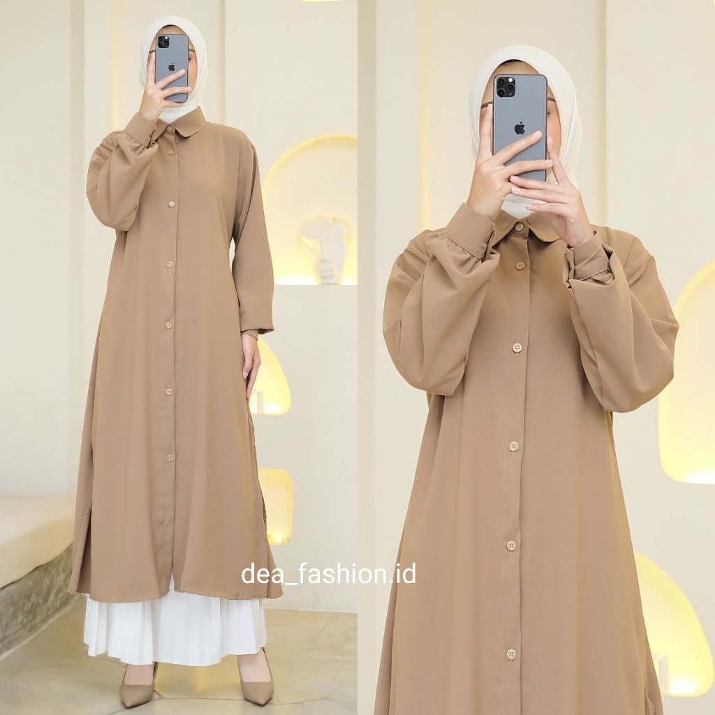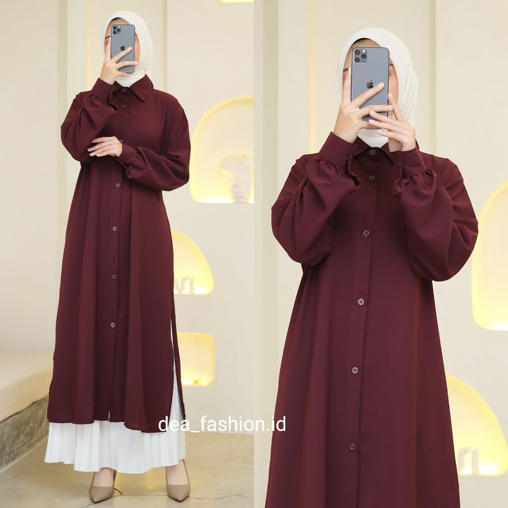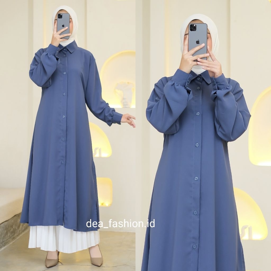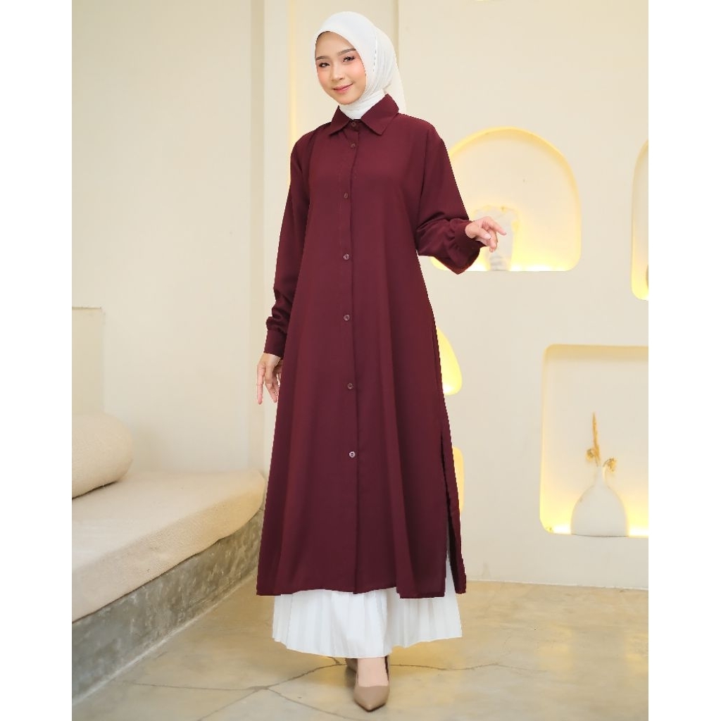 NEYLA long tunik bahan Sabrina Premium / Baju Atasan Polos Wanita Muslim Premium Lengan Panjang Full Kancing