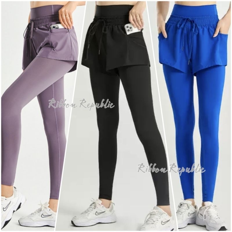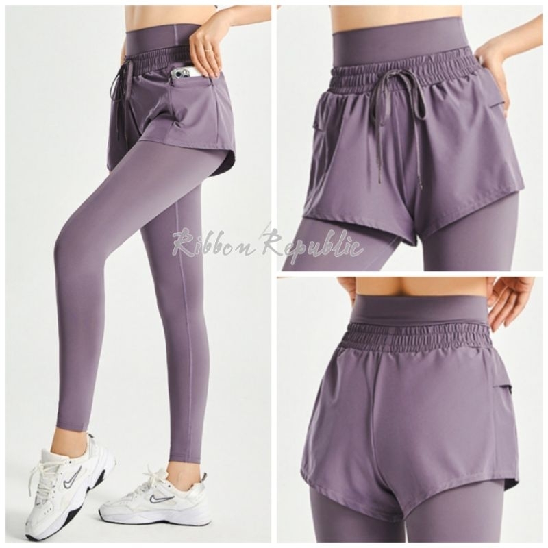 Celana Olahraga 2 in 1 Wanita High Waist Legging Panjang Woman Sport Shorts Fitness Lari Sepeda Yoga