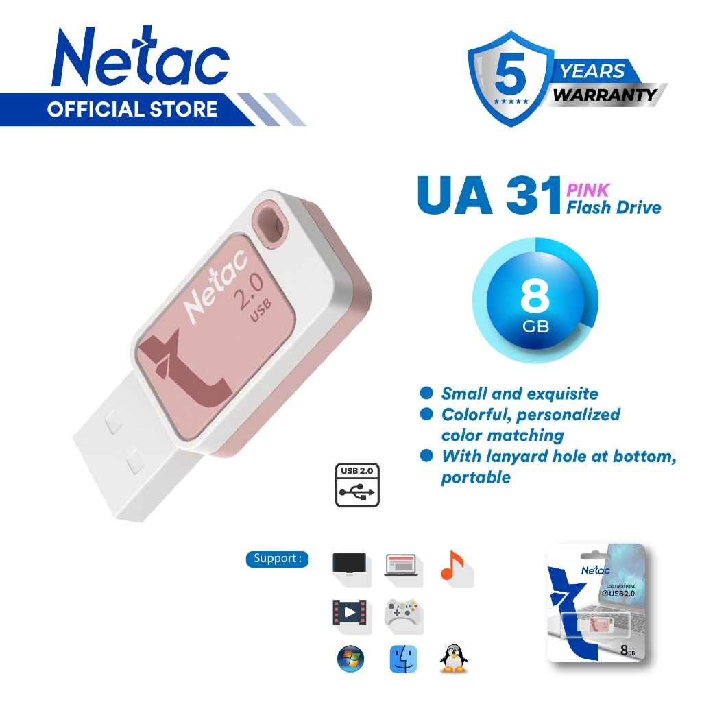[Mall] NETAC FLASHDISK UA31 USB 2.0 FLASH DRIVE 8GB PINK FLASH DISK JUMP DRIVE FULL SUPPORT FOR COMPUTER SMART TV
