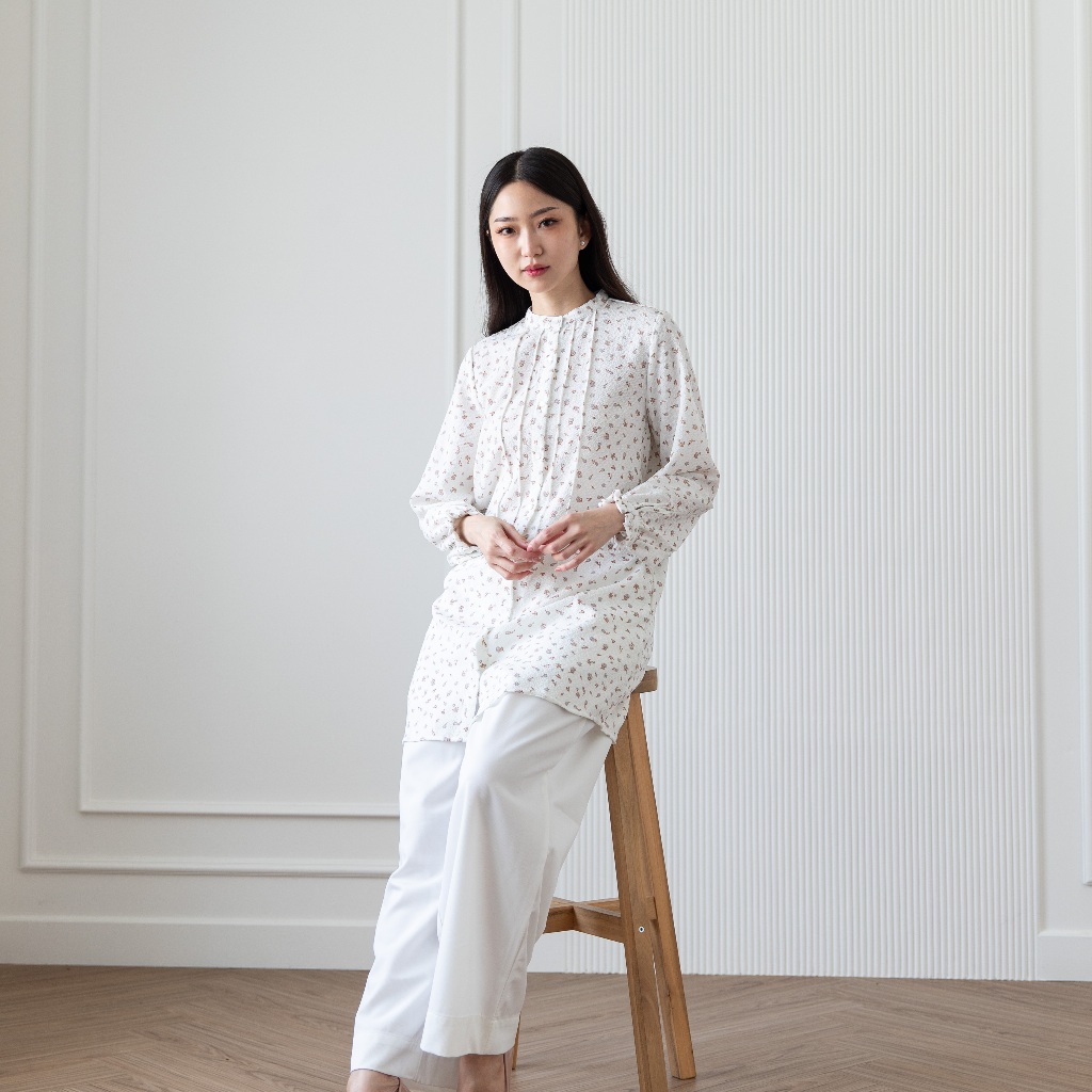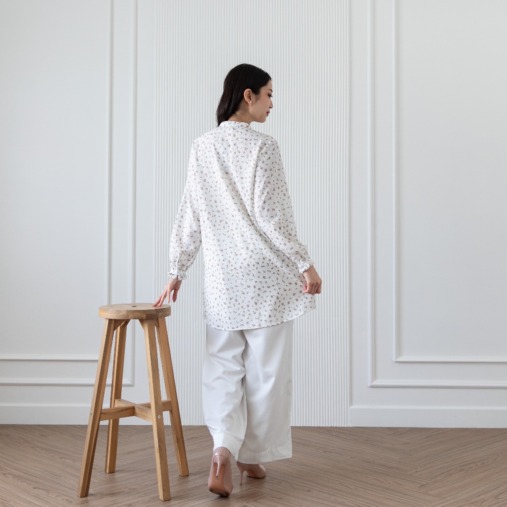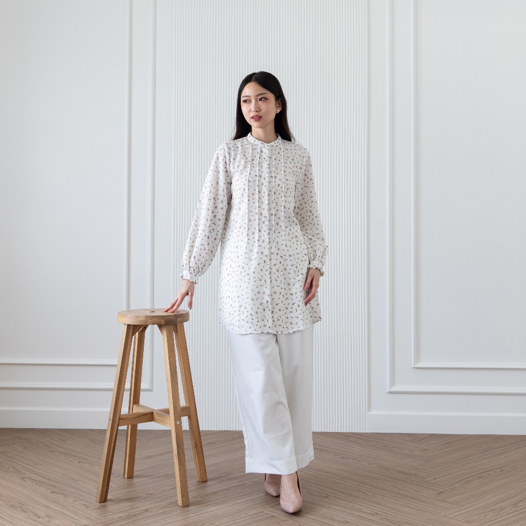 COME Kaia Floral Tunik 143 Off White -Tunik Poly Dobby Hijaber Muslim Friendly Office Work Wear Kantor