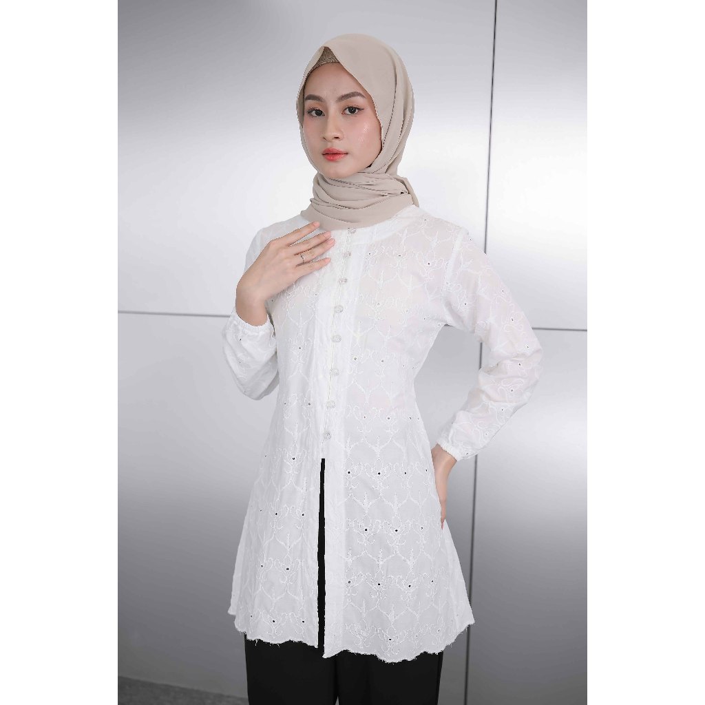 Chea Tunik - Atasan Tunic Wanita Bahan Katbol Katun Bolong Bordir Premium Elegan Kekinian Terbaru