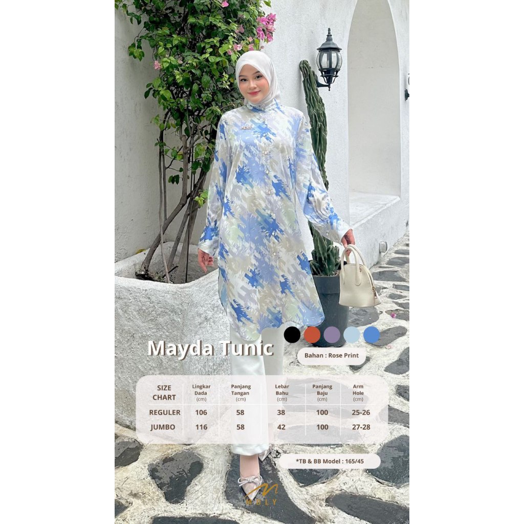 MDLY Baju kemeja atasan wanita/Baju Atasan Tunik Motif Rose Print/Tunic Basic/Mayda Tunic by MDLY