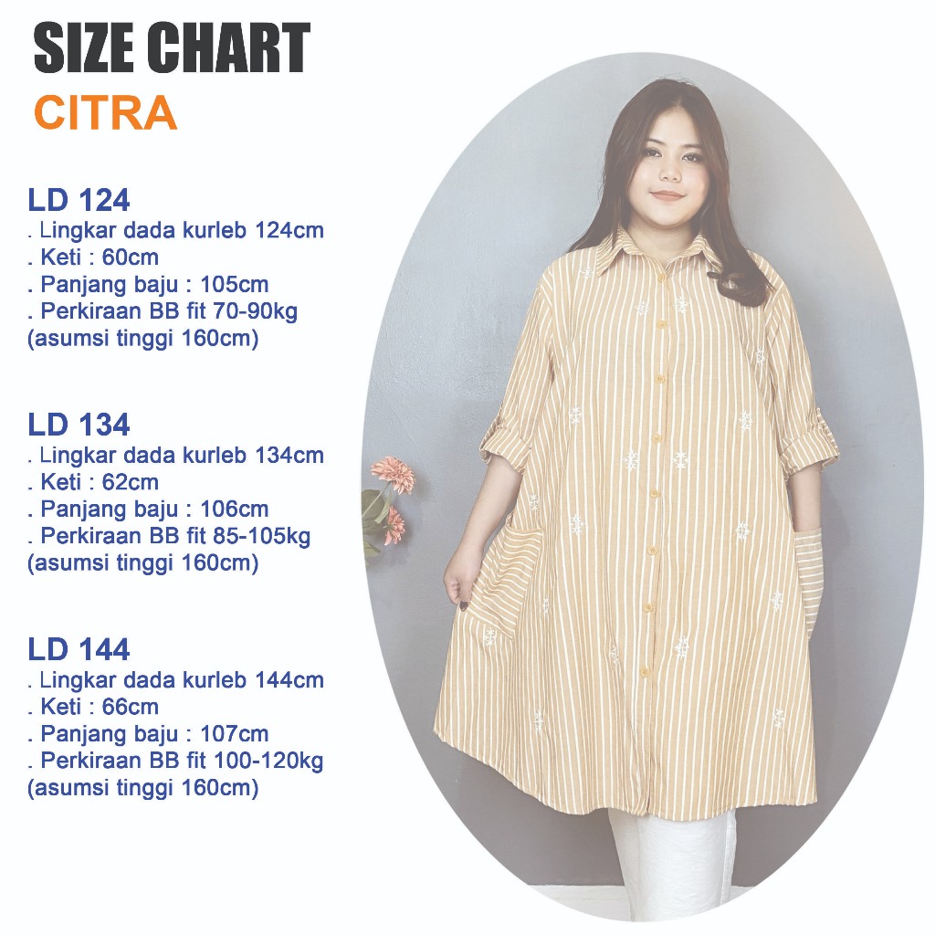 BP CITRA Tunik Bordir 70-120kg LD 124-134-144CM Keti 60-62-66 Tunik Wanita Kekinian Terbaru Dengan Kombinasi Bordir Tuni