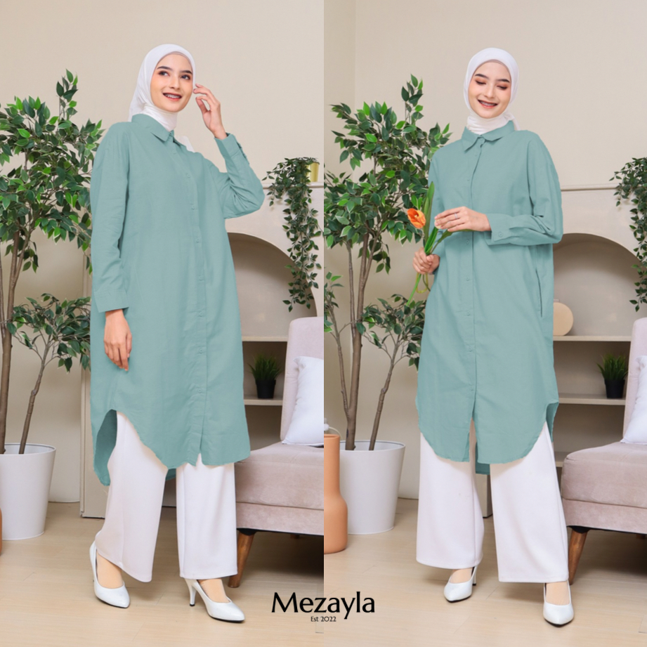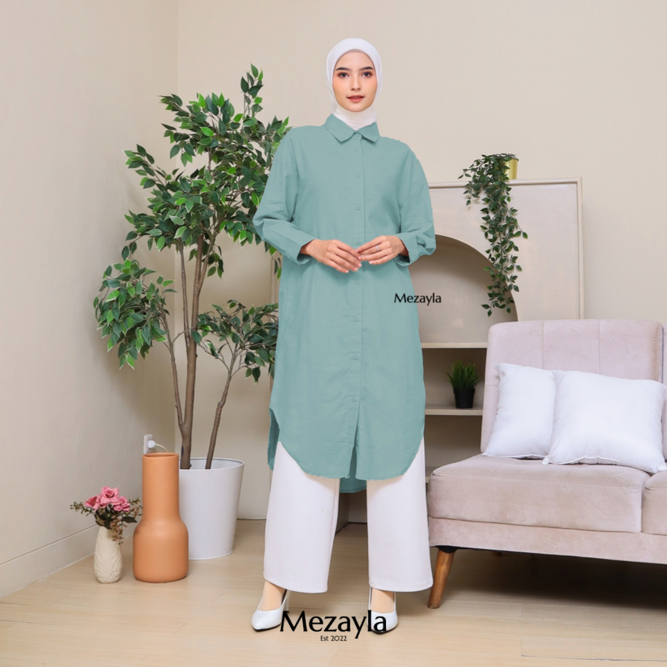 Mezayla Long Tunik Oversize Wanita Panjang Linen Premium