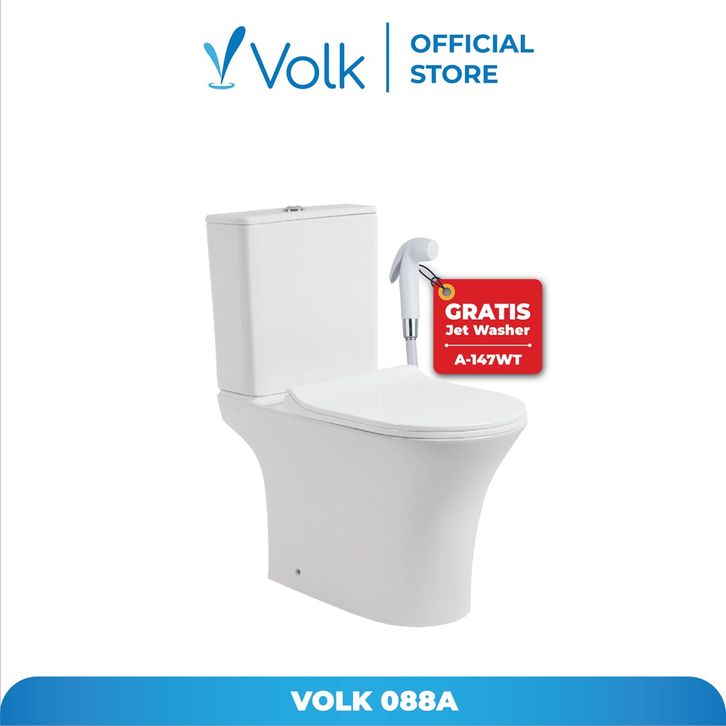 KLOSET DUDUK 1 SET VOLK 088R TWO PIECE TOILET WHITE + Packing kayu + Jet Washer V147 White