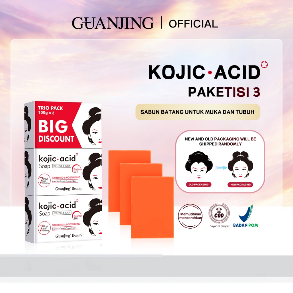 GUANJING 3PCS Natural Kojic Acid Soap Whitening Brightening Sabun Mandi Cocok Untuk Wajah Dan Tubuh