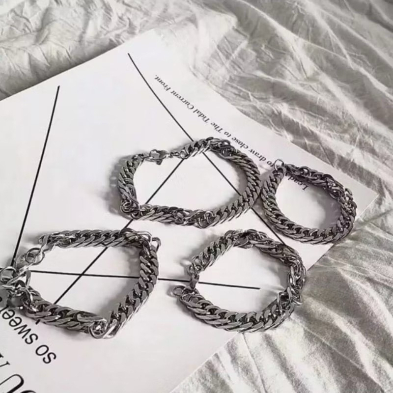 [Mall] GELANG RANTAI TITANIUM STEL PRIA MODEL DABEL REDY LEBAR 3MM 5MM 7MM 8MM 9MM 11MM