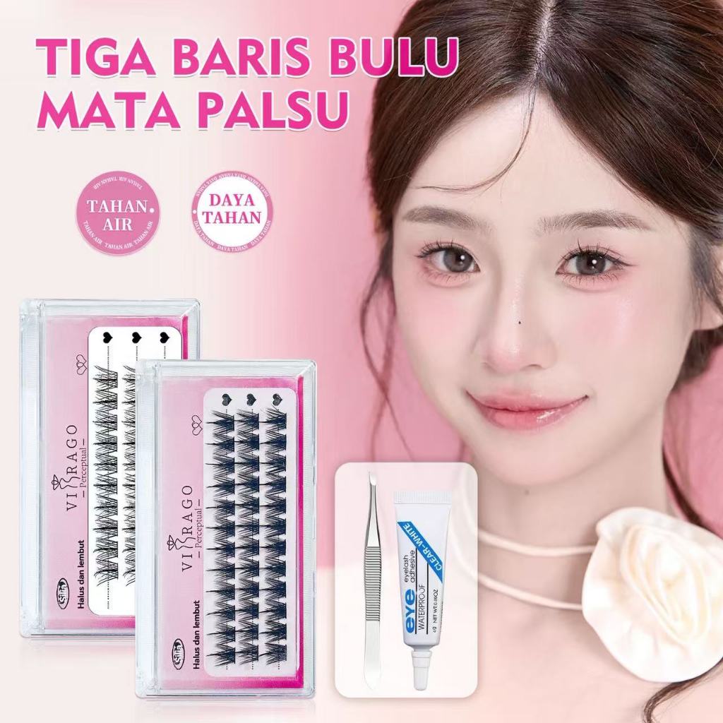 [BUY 1 GET 2] BEAUTY&CHIC TIGA BARIS BULU MATA PALSU 12MM FASHION EYELASHES RIASAN MATA EYELASH EKSTENSION SERAT BUATAN BERKUALITI TINGGI TAHAN LAMA DAN RINGAN DENGAN LEM & PINSET GRATIS