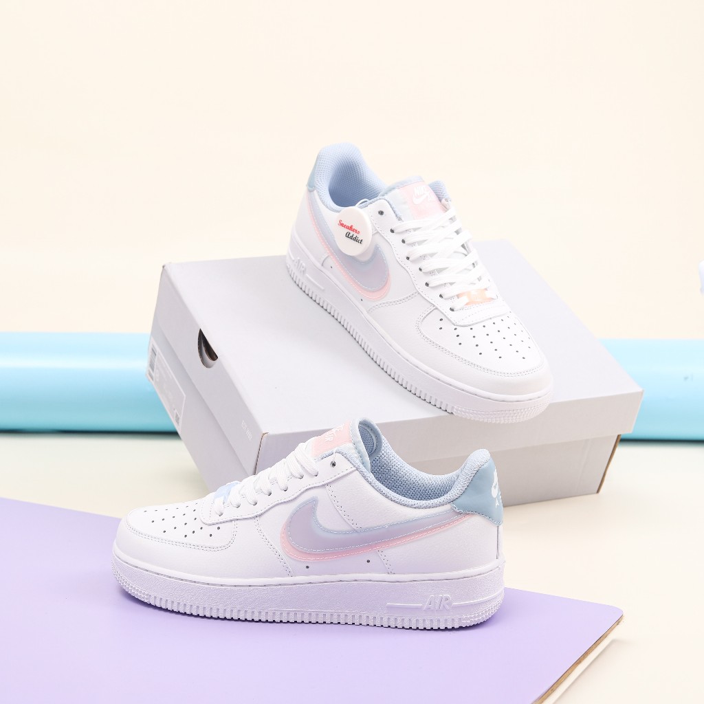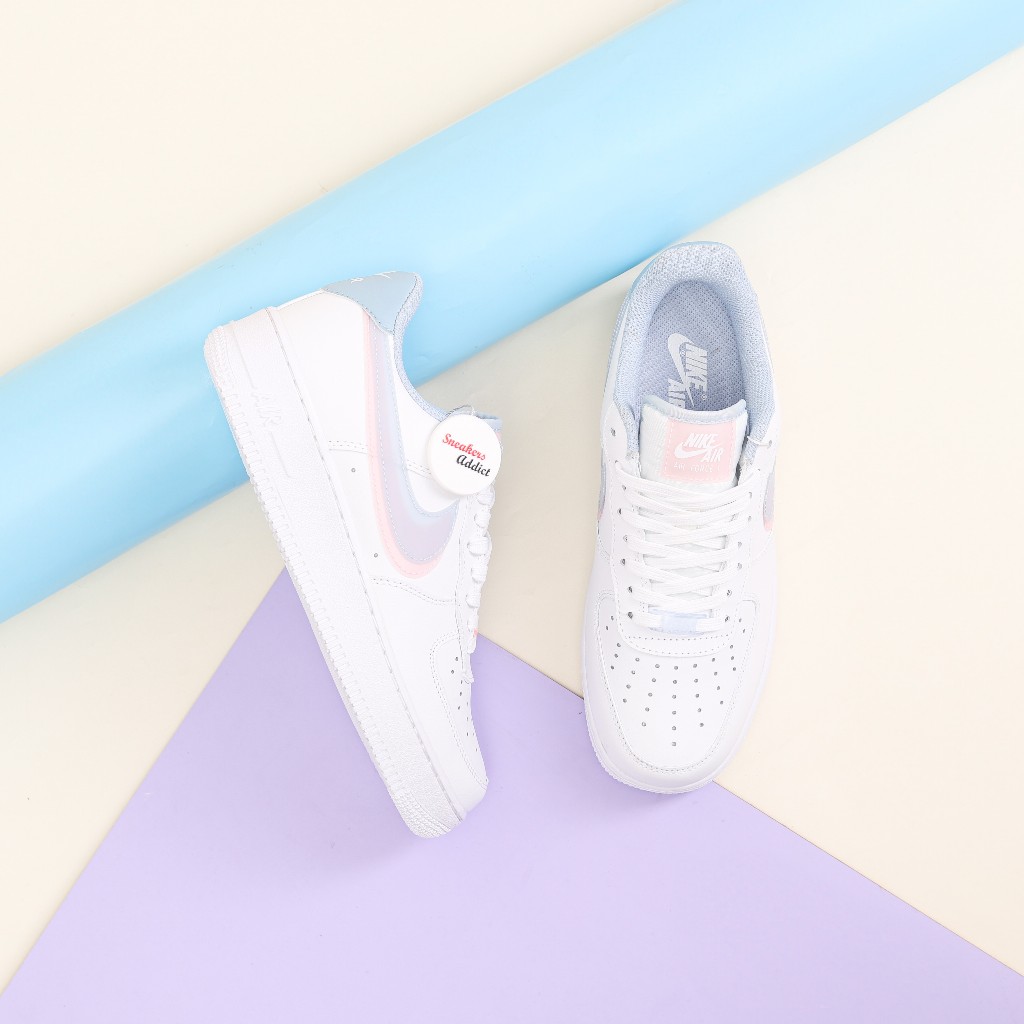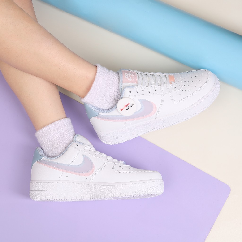 Sepatu Nike Wanita Original - Sepatu Sneakers Air Force 1 Low LV8 Double Swoosh Light Armory Blue Shadow Pink Import