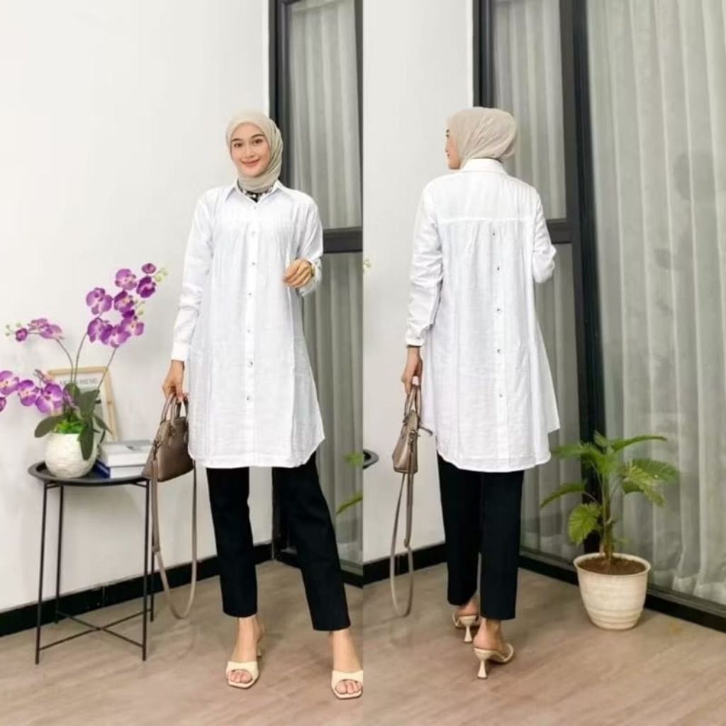 Zeva Tunik Polo Linen Anti Kusut Adem Halus Variasi Kancing Belakang