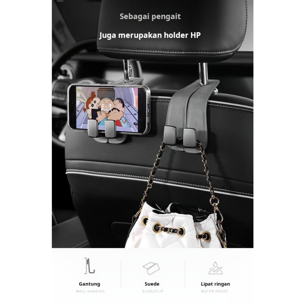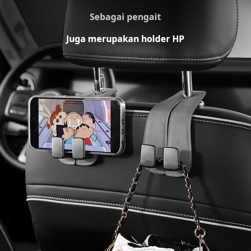 Kait mobil sandaran kursi mobil kait ganda kait belakang logam suede kait kecil kait dudukan ponsel di dalam mobil