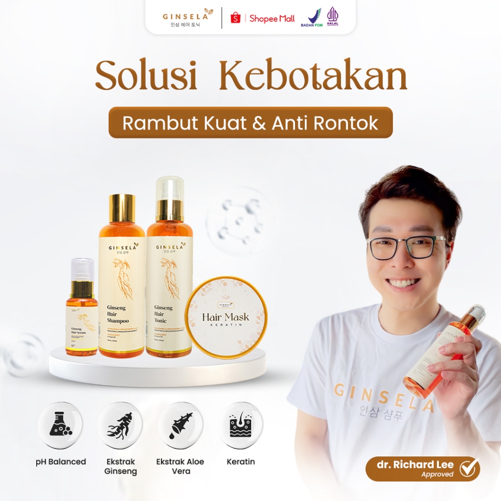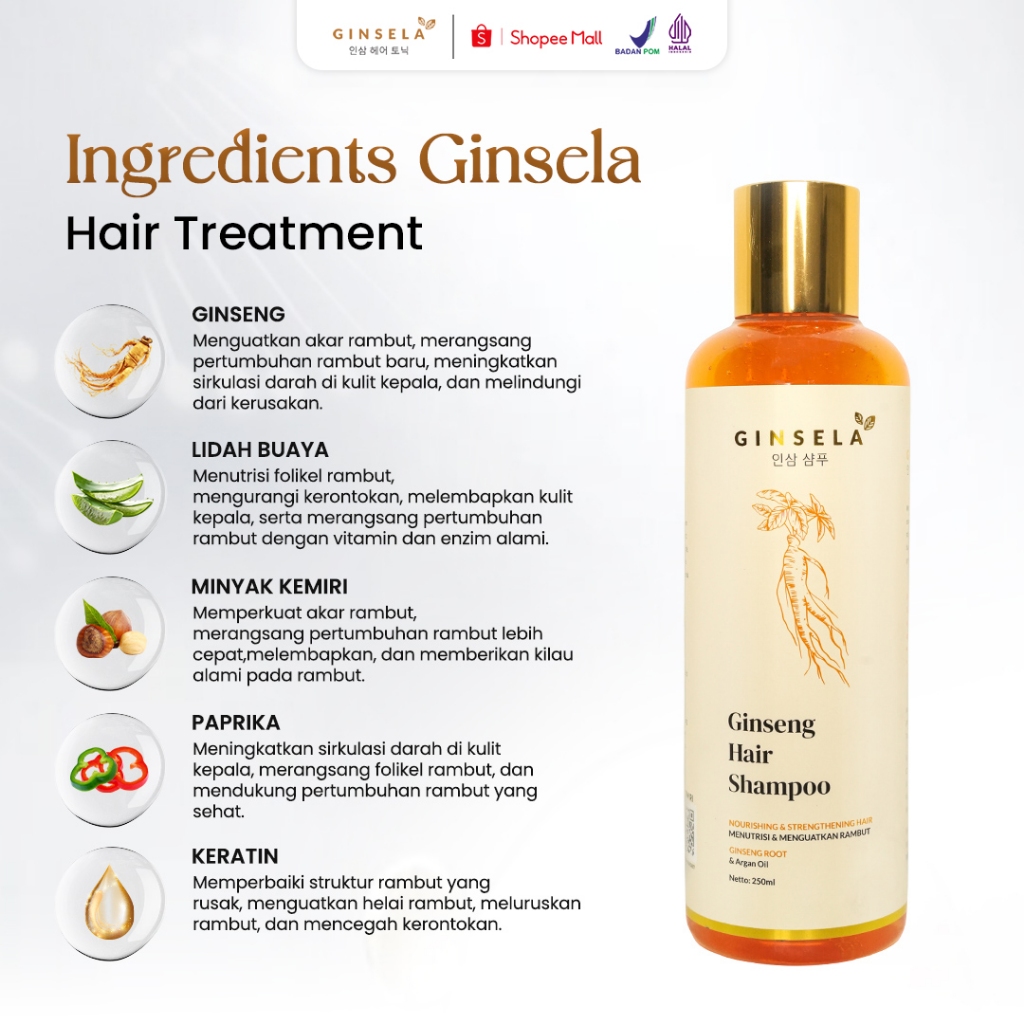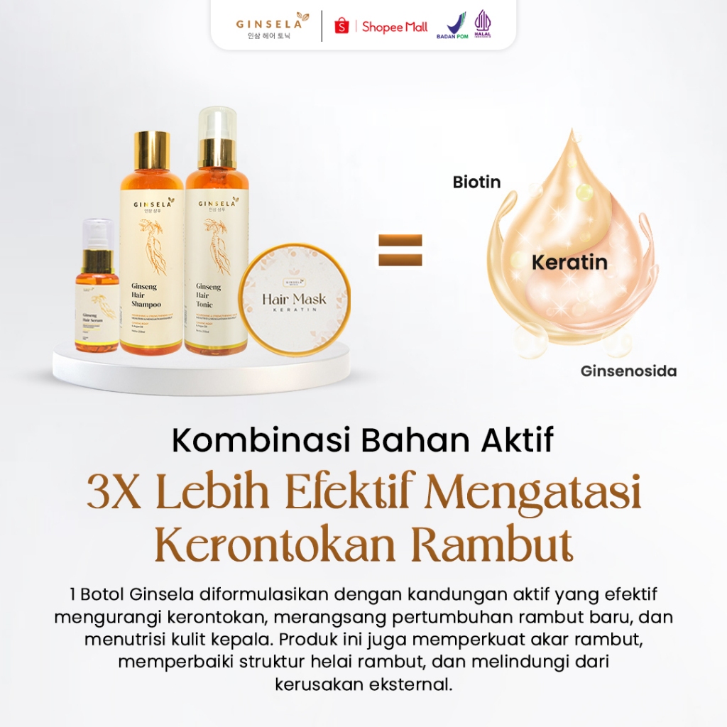 Ginsela Paket Shampoo + Hairtonic + Hair Mask | Ampuh Meredakan Ketombe Hair Tonic Original Melebatkan Rambut