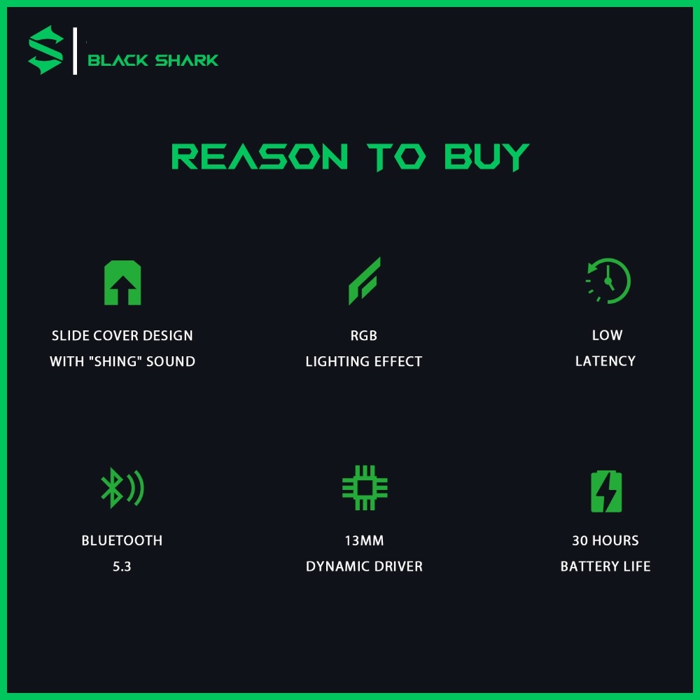 Tws Black Shark Lucifer T11|Metalik Desain Ninja | Suara Imersif & jernih | Peredam Bising (ENC) | Baterai Awet 30 Jam
