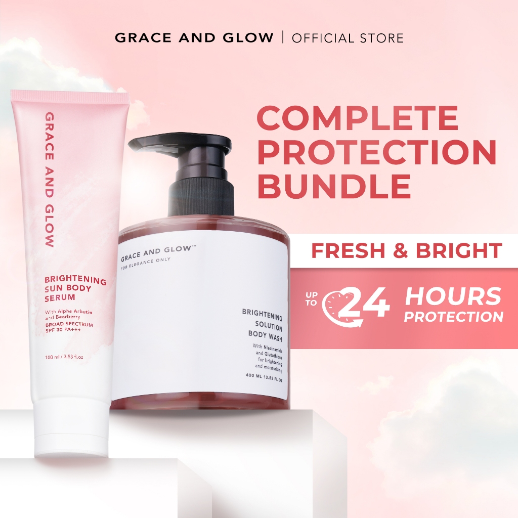 Grace and Glow COMPLETE PROTECTION Bundle Body Wash & Body Serum - Brightening Solution Body Wash + Brightening Sun Body Serum SPF 30PA+++ | Sunscreen Extra Mencerahkan dan Melindungi dari sinar UV |