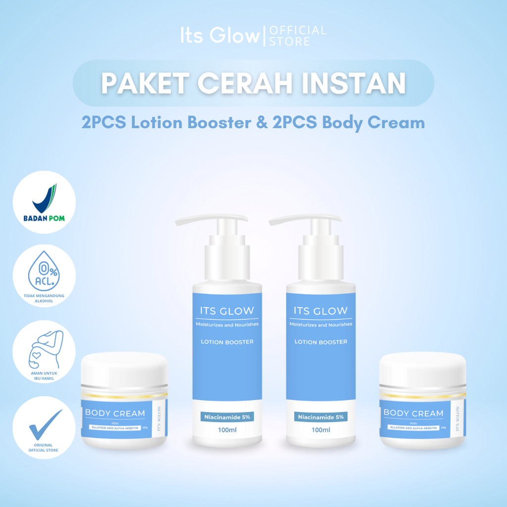ItsGlow - Paket Cerah Instan (2 Lotion Booster & 2 Body Cream) | Lotion Booster New Formula with 5 PERSEN niacinamide