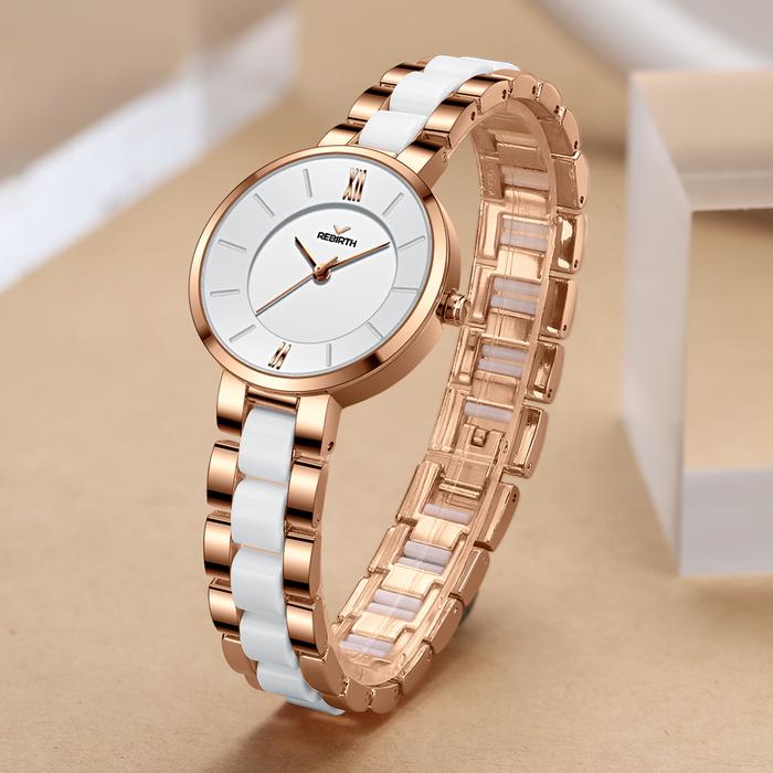 REBIRTH Jam Tangan Wanita Mode Anggun Tali Stainless Steel Jam Cewek