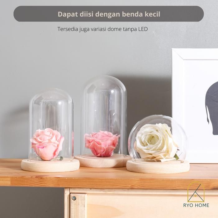 RYO BEVAN Display Glass Dome Dengan Handle LED Lights / Kubah kaca - 9x15 cm Star NOKakiLEDDalam
