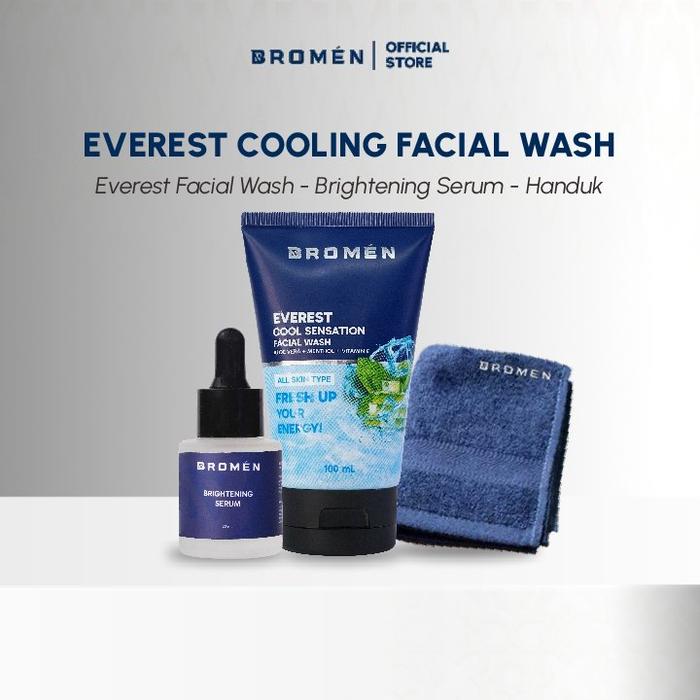 BROMEN COOLING SET Everest Facial Wash - Brightening Serum + Handuk SKINCARE COWOK Pencerah Wajah