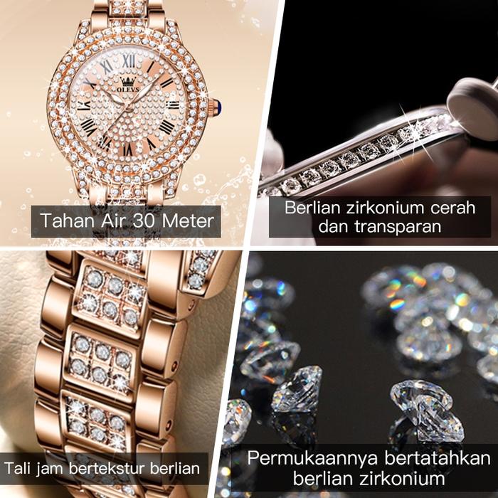 OLEVS Jam Tangan Wanita Original Anti Air Elegan Tahan Korean Fashion Diamond Face Modern High