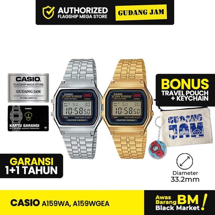 Jam Casio A159WA-N1DF A159WA Digital Stopwatch