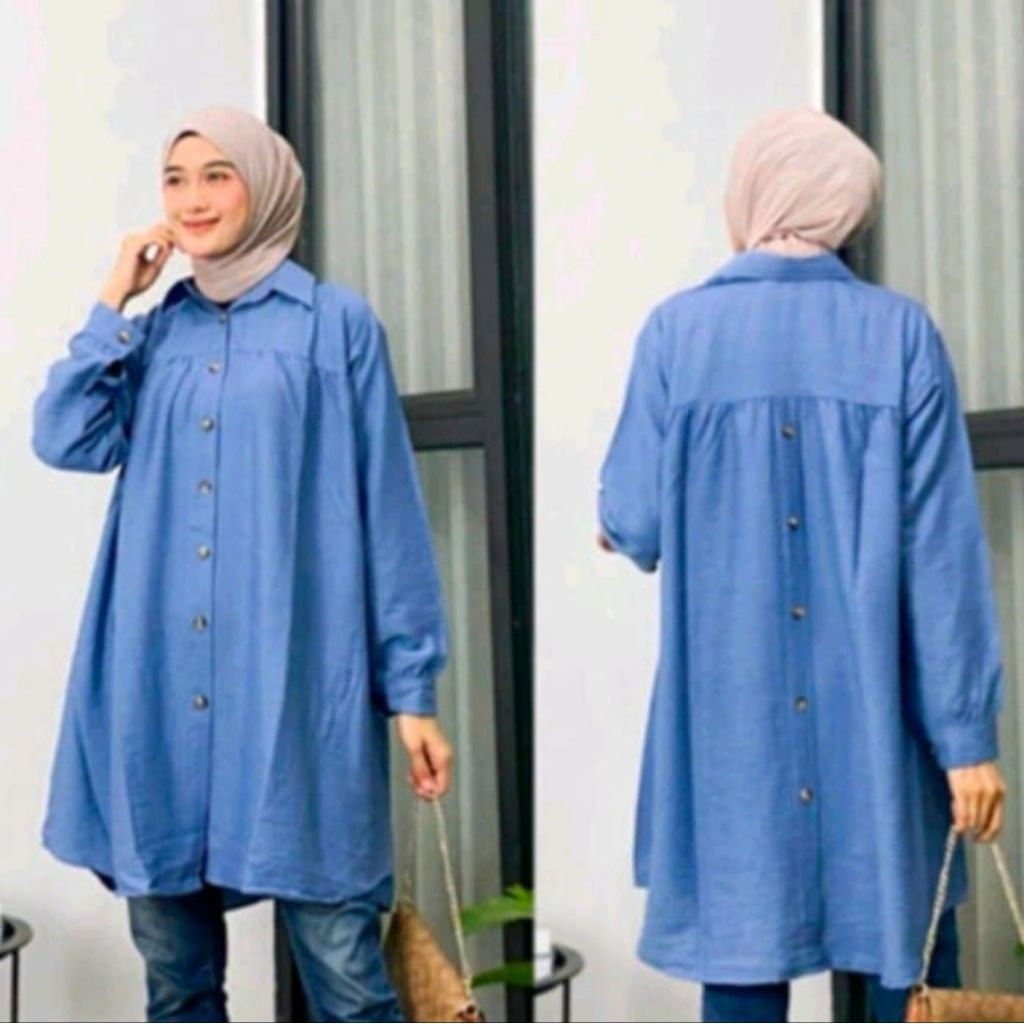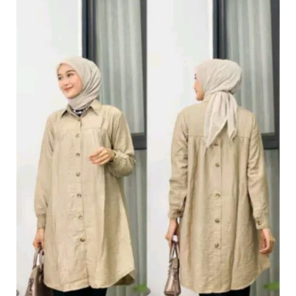 Zeva Tunik Polo Linen Anti Kusut Adem Halus Variasi Kancing Belakang