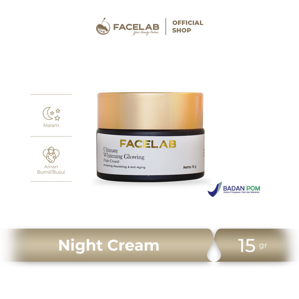 FACELAB - ULTIMATE WHITENING GLOWING NIGHT CREAM 15 G | PENGHILANG FLEK HITAM DI WAJAH AMPUH