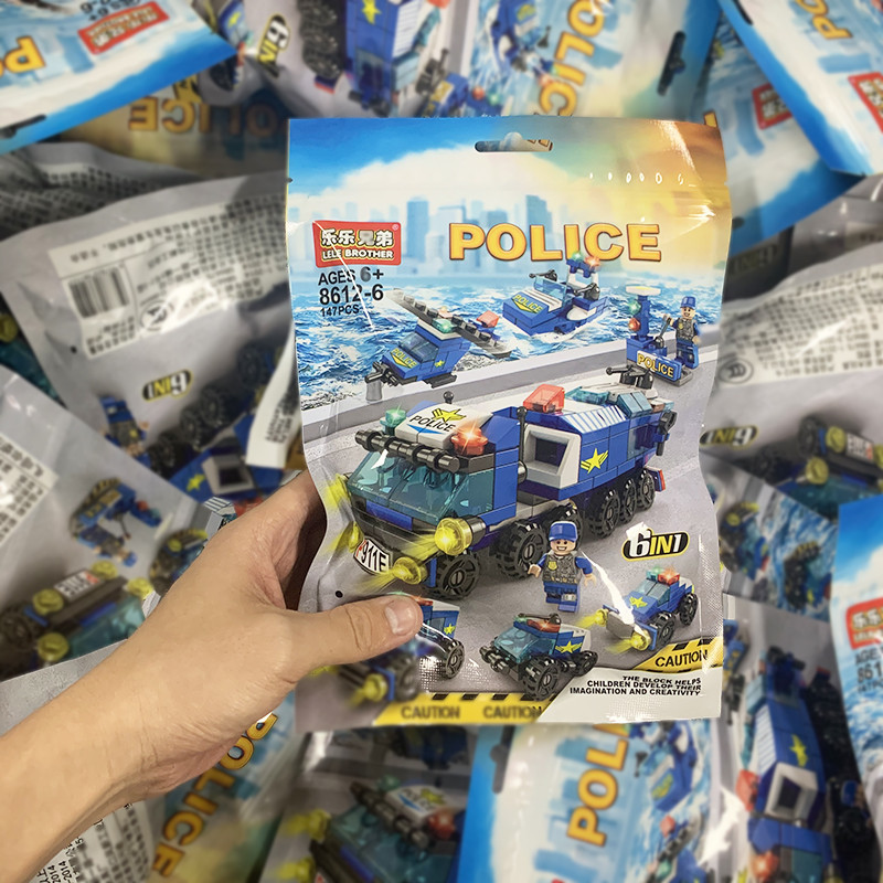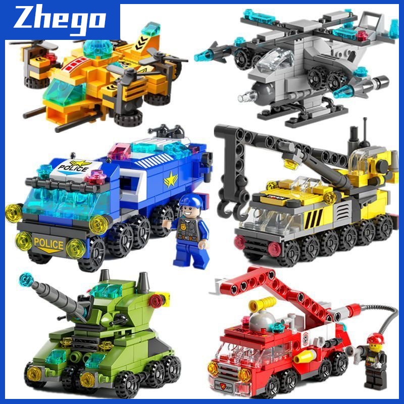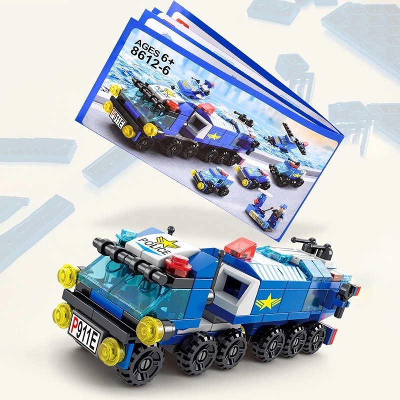 Bricks Balok Model Police Navy Fire Truck 3D Puzzle Balok Susun Mainan Edukasi Anak 5/6 Tahun+