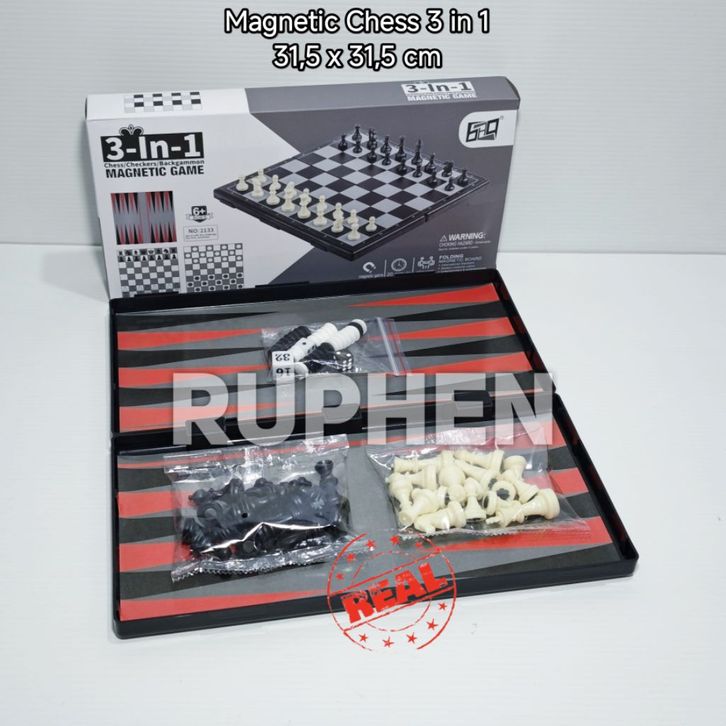 Catur Magnet 3 in 1 / Chess Checkers Backgamon Eco XL 31,5 x 31,5 cm