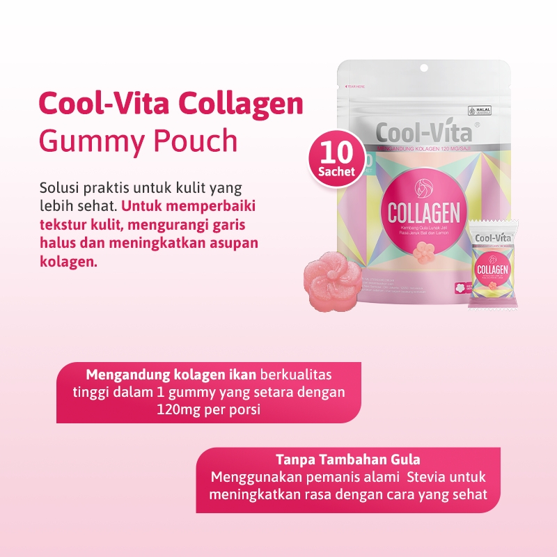 COOLVITA ORIGINAL 1 Pouch Collagen Gummy Rasa Jeruk Bali dan Lemon | Gummy Sehat Penuh Manfaat | Suplemen Glowing Rambut