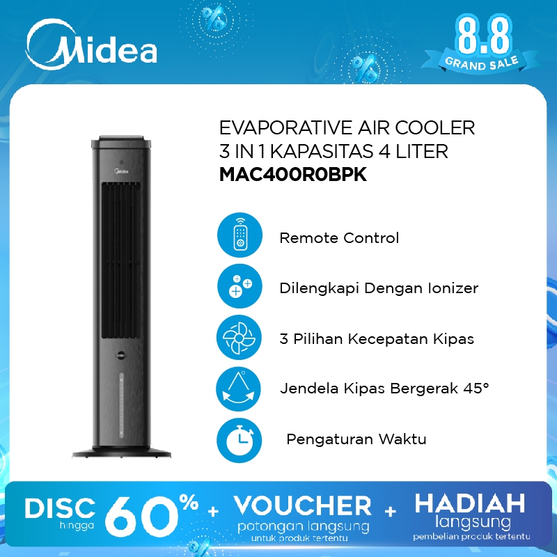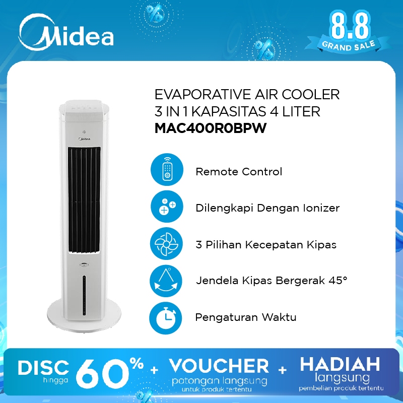 Midea 3-in-1 Evaporative Air Cooler - MAC400R0BPW (4L) - Remote and Ionizer Technology Gen 2