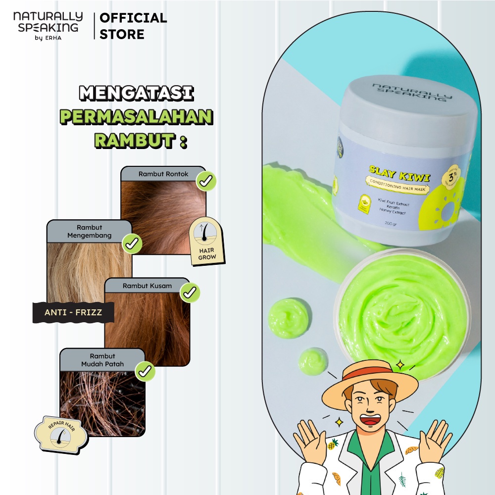 Masker Rambut Naturally Speaking Slay Kiwi Conditioning Hair Mask - Kondisioner Keratin, Panthenol