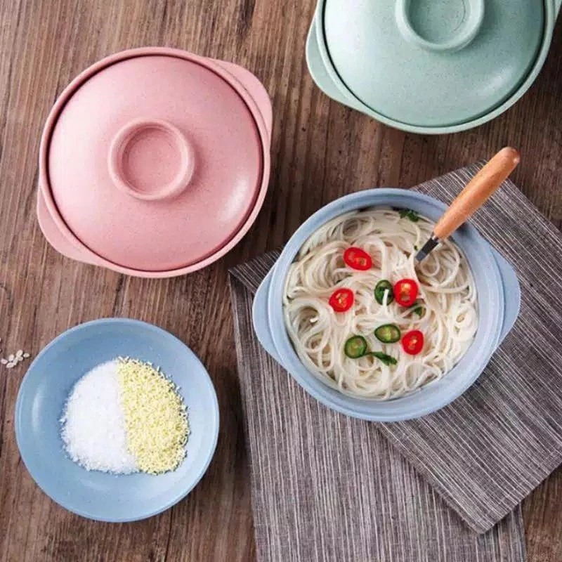 MANGKOK JERAMI TUTUP 2-IN-1 ( MANGKOK + TUTUP ) WHEAT STRAW WARNA / Mangkuk Makan Wheat Straw Bowl / Wadah Tempat Makana