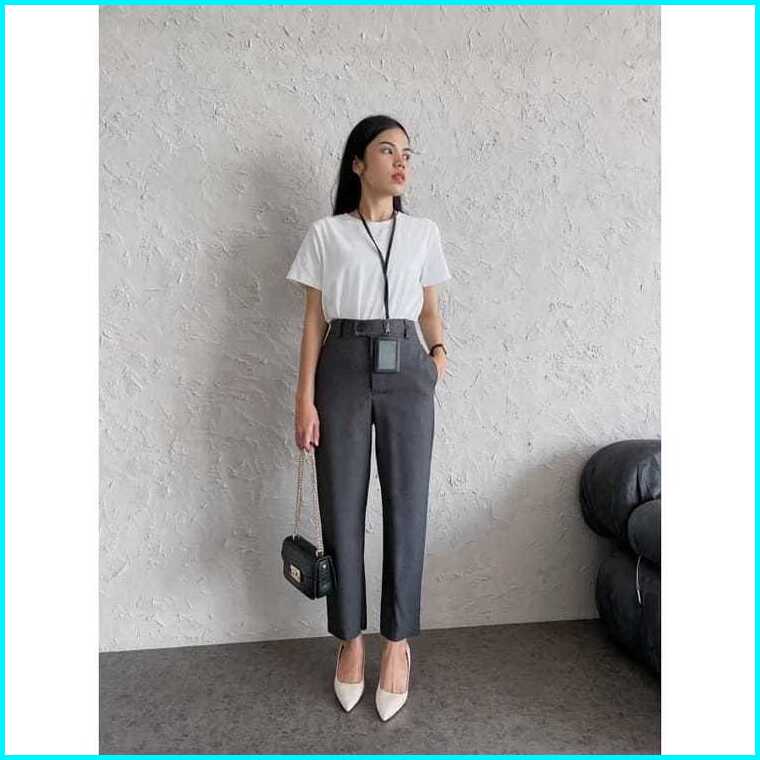 Alexa Pants - Celana Kerja Wanita Kantor Daily Simple Pinggang Karet Belakang