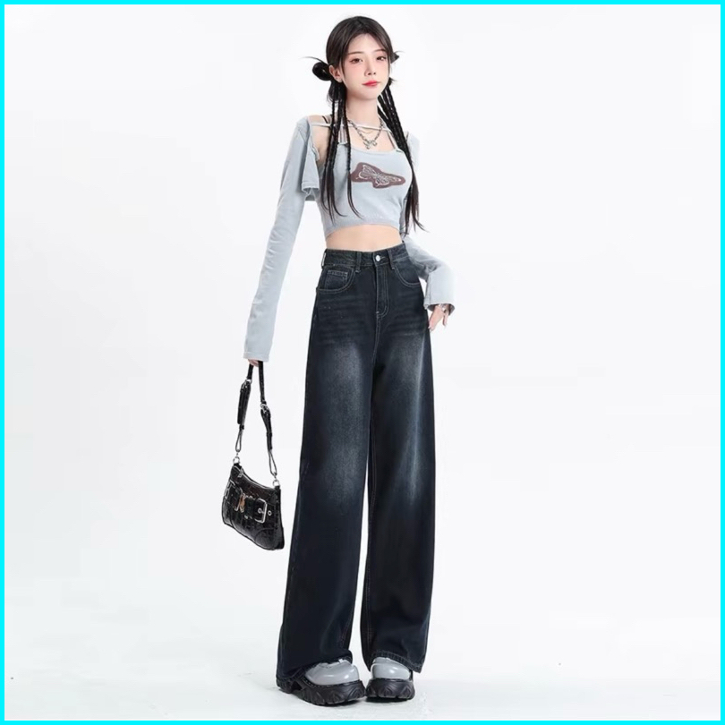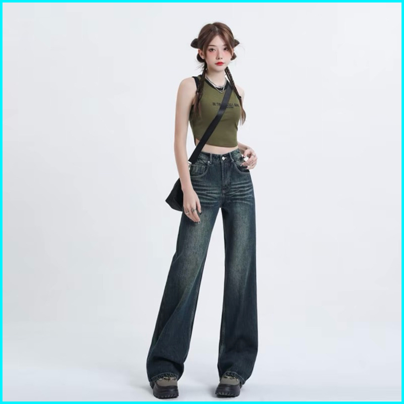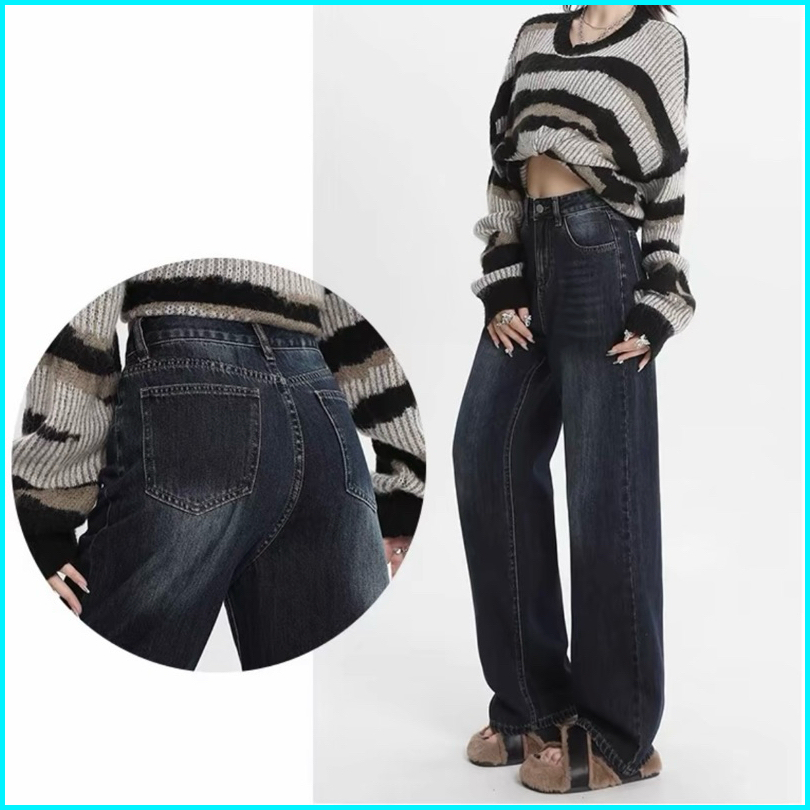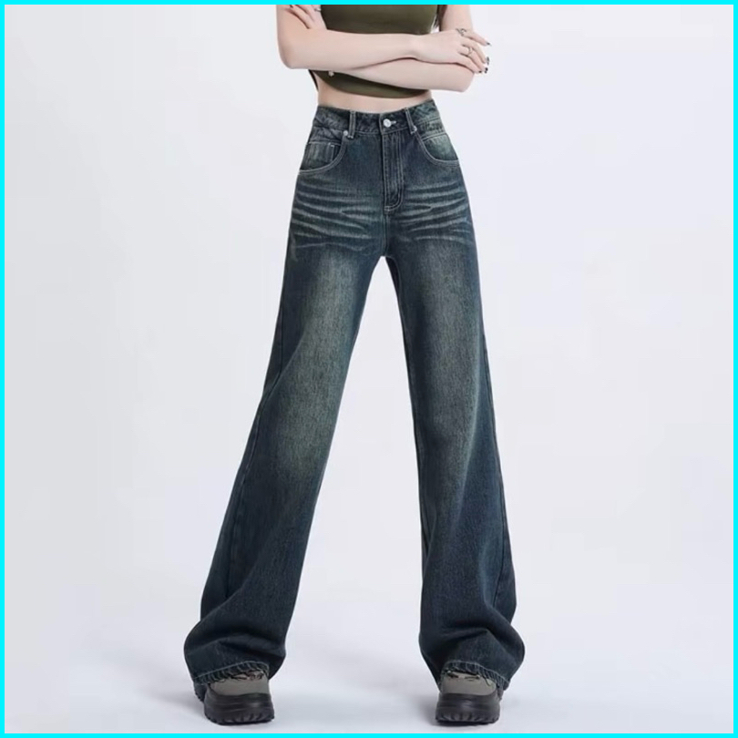 Celana Jeans Wanita Biru Retro Highwaist Loose Jeans Korean Skena Style Premium Denim Retro Kekinian