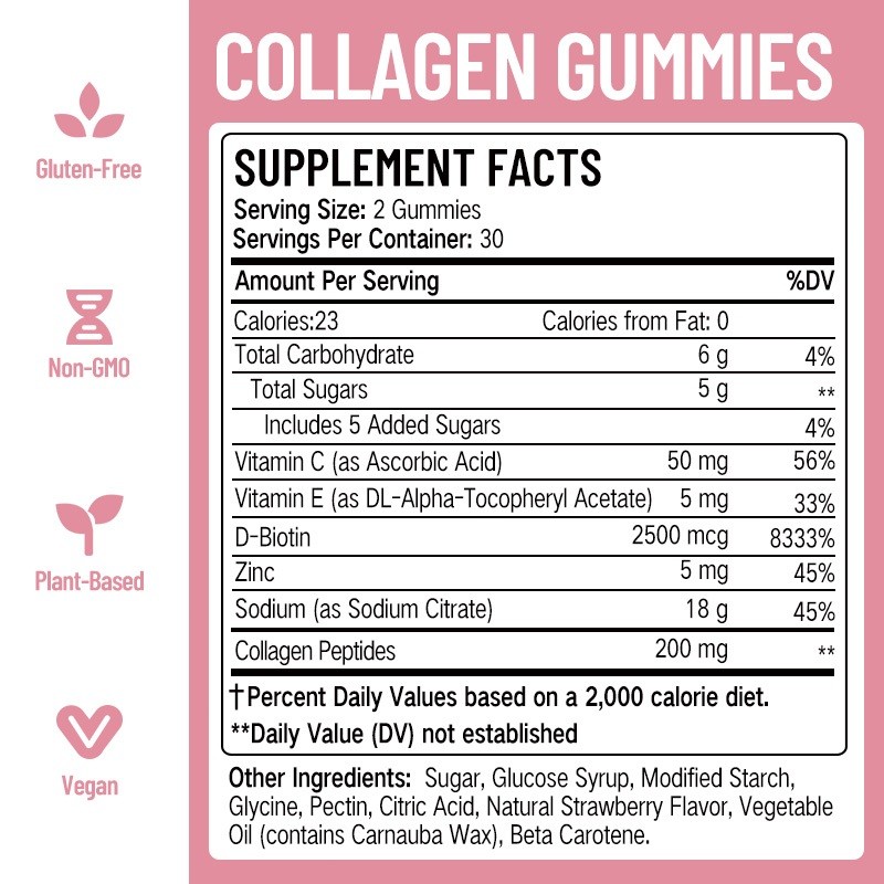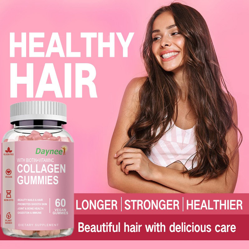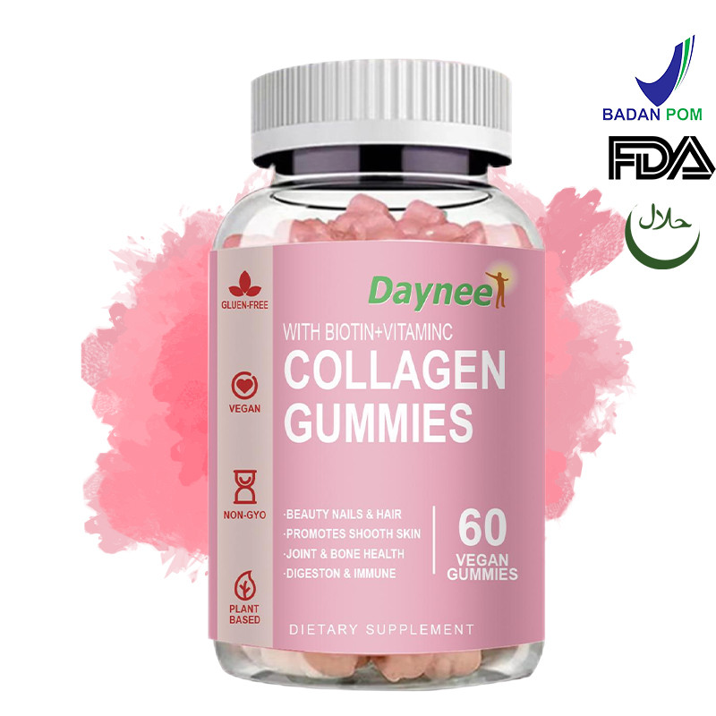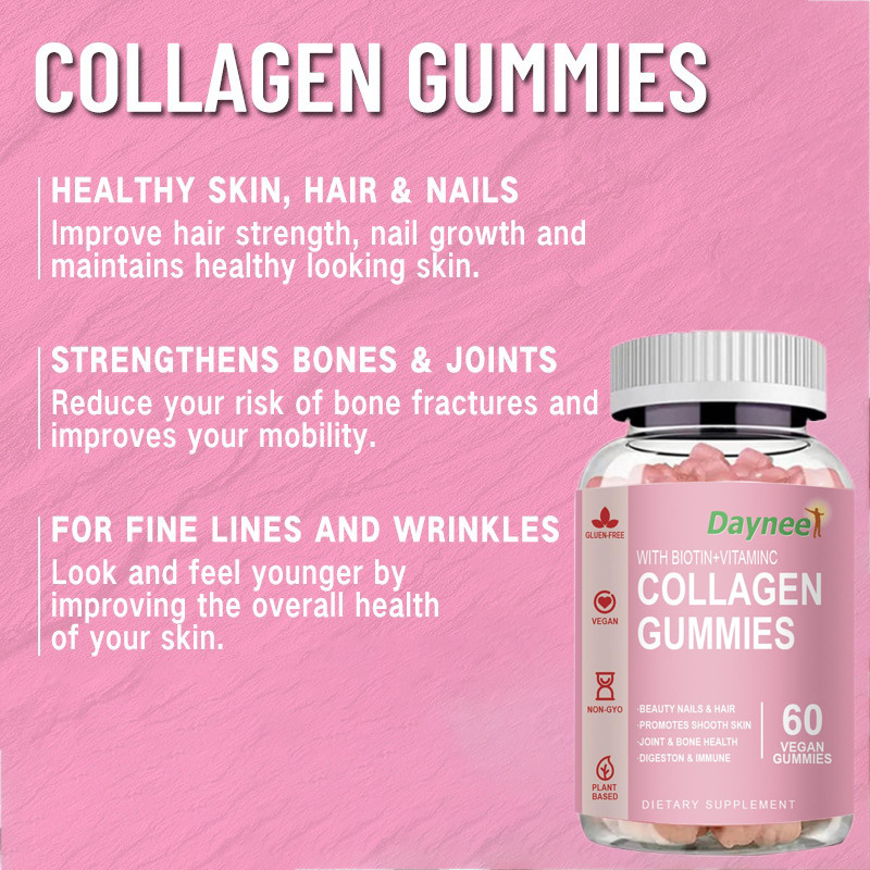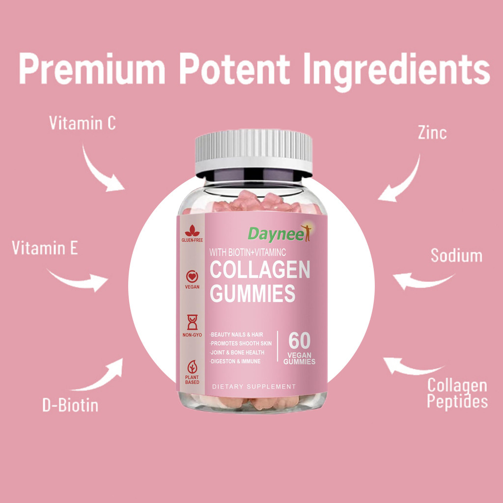 Daynee Collagen Gummies with Biotin Vitamin C Skin Beauty Whitening Hair Nail Support Boost Immune Anti Age 60pcs Kolage