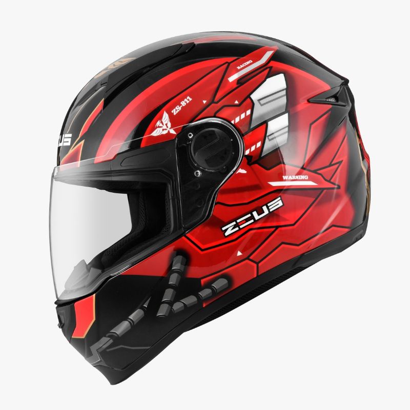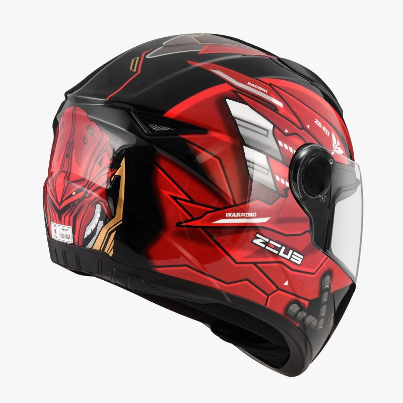 Zeus ZS 811C Black AL54 Red Helm Fullface Robot dam
