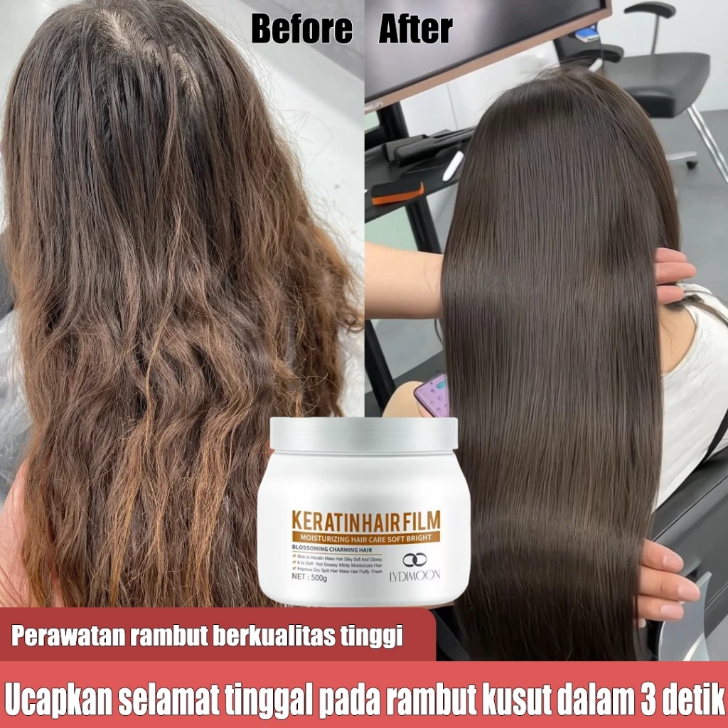 LYDIMOON BPOM Masker Rambut Keratin Tanpa Steaming 500g - Perbaiki Rambut Rusak Kering Bercabang CEPAT Lembut Berkilau Instan