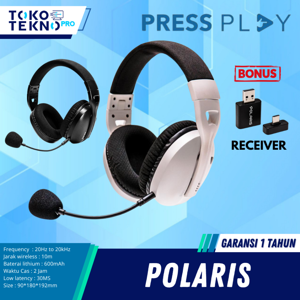 Press Play Polaris Wireless Headset Quad-e Gaming Headphones with Mic